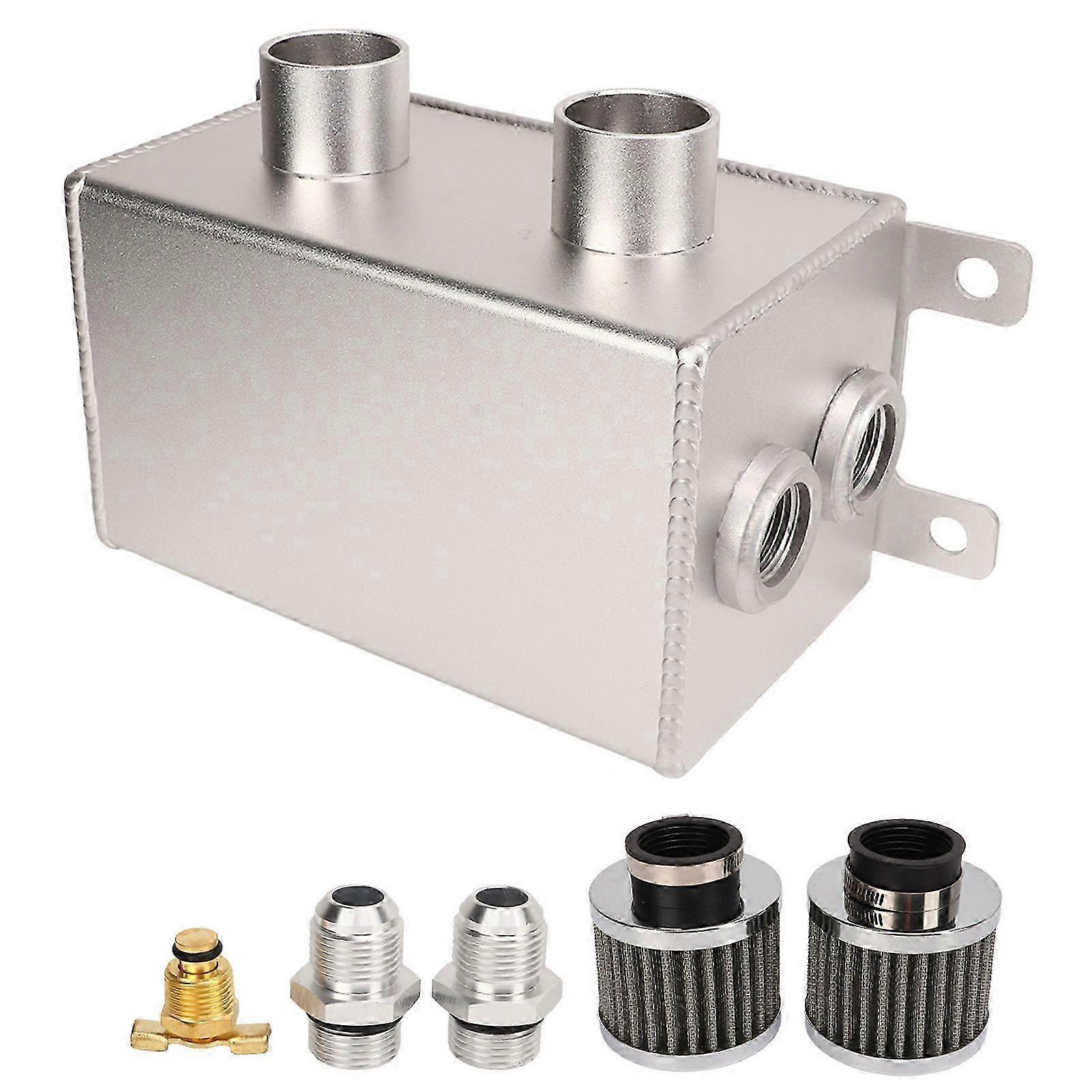 1200ml Oil Catch Can Kit Engine Twin Baffle Dual Filter Oil Tank Reservoir AN8 Hose Fitting Silver