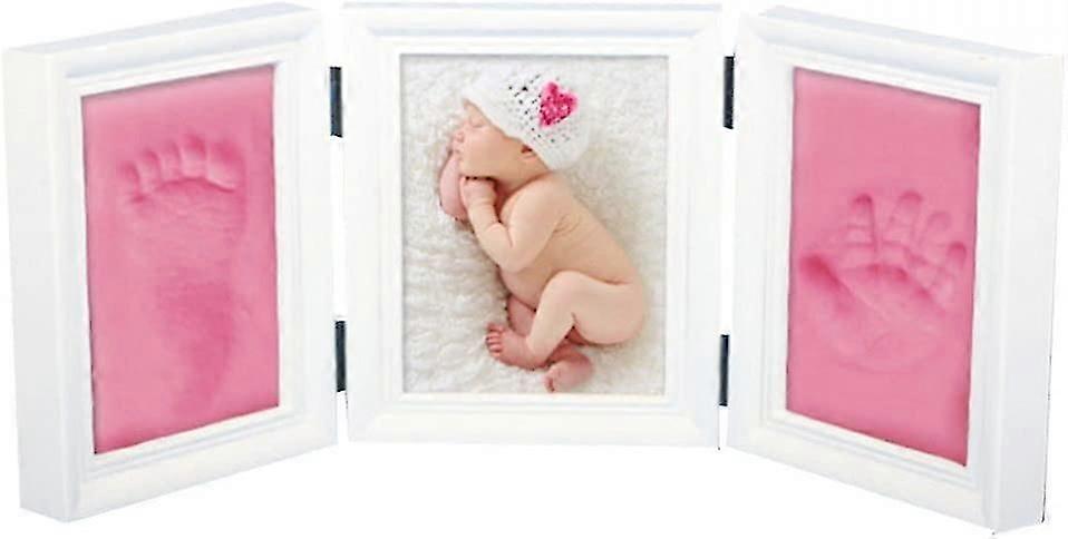 Baby Handprint Handprint Photo Frame Kit For Girls Perfect Baby Shower Gift, Pink Clay And White Wood Frames