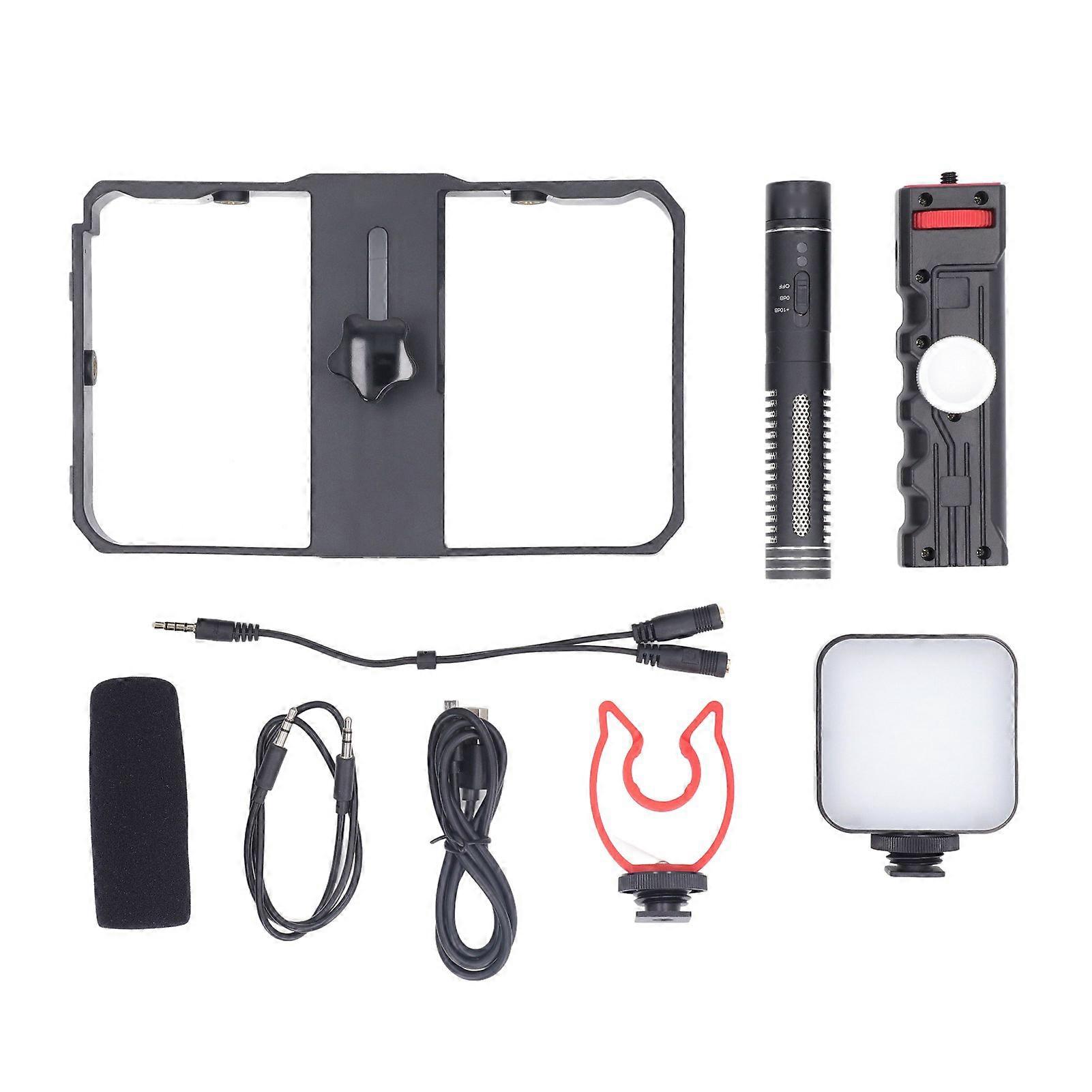 Video Rig Kit Handle Phone Stabilizer Cage Fill Light Microphone with Mic Foam Handheld Filmmaking Equipment for Vlog