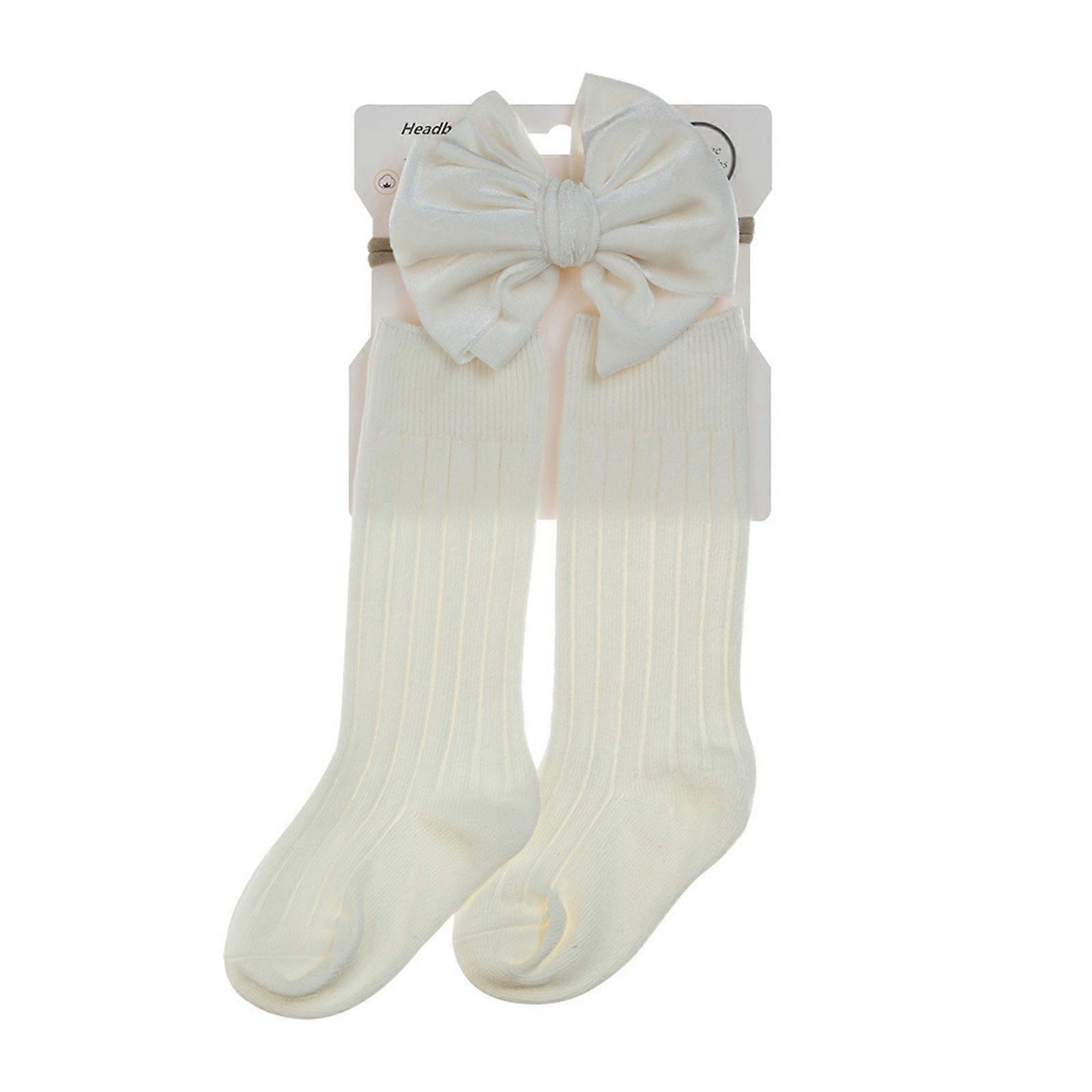 Baby Girls Socks Toddler and Headband Set Knee High Socks Bowknot Headband Infant Cotton Socks Gift for Babies Toddler White S