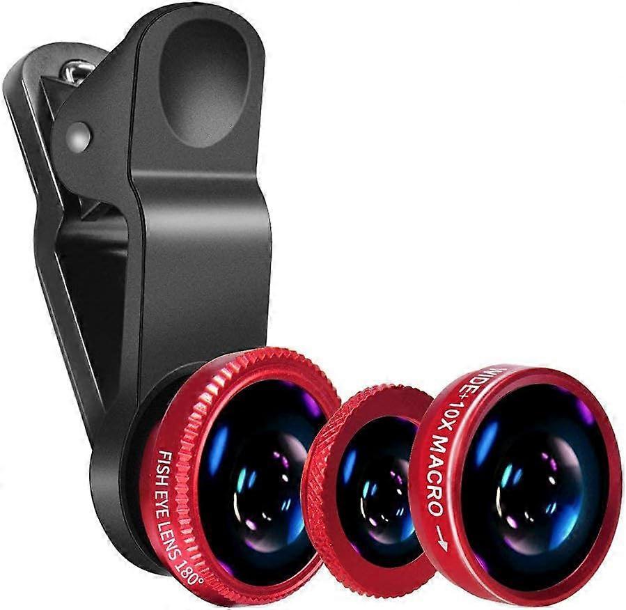 Mobile Phone Camera Lens Kit With Fish Eye Lens +Macro Lens + Wide Angle Lens Compatible With iPhone,Samsung,Huawei,iPad,Sony,HTC,LG,etc (Red)