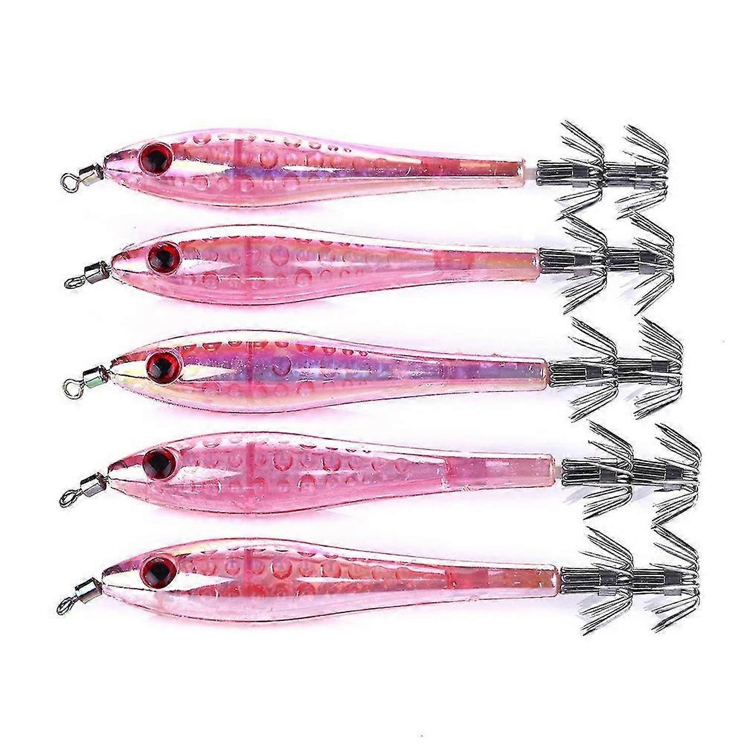 Fishing Squid Lures Kit 5pcs Plastic Hard Squid Jig Hooks Suitable for Freshwater Seawater 9.5cm(green
