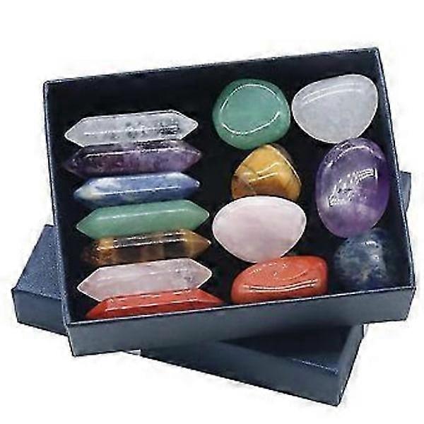 14 Pcs Premium Crystal Kit 7 Chakra Set Hexagonal Column Irregular Yoga Stone Spiritual Massage Stone Labradorite