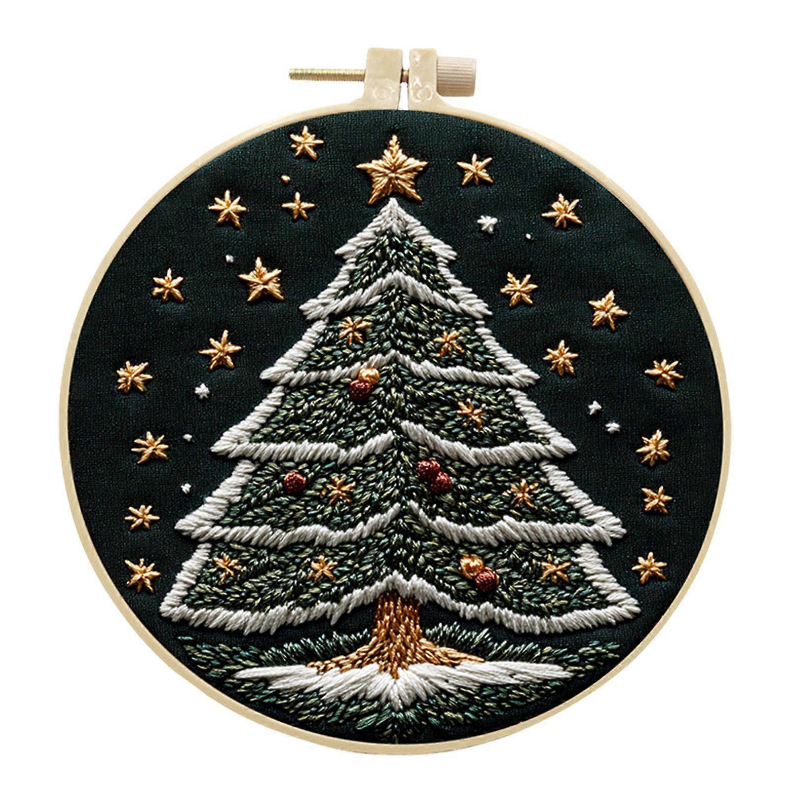 Christmas Embroidery Kit for Adults Kids DIY Christmas Tree Embroidery Craft Kit Embroidery Cloth Thread Hoop Set Gift for Embroidery Lovers Beginners