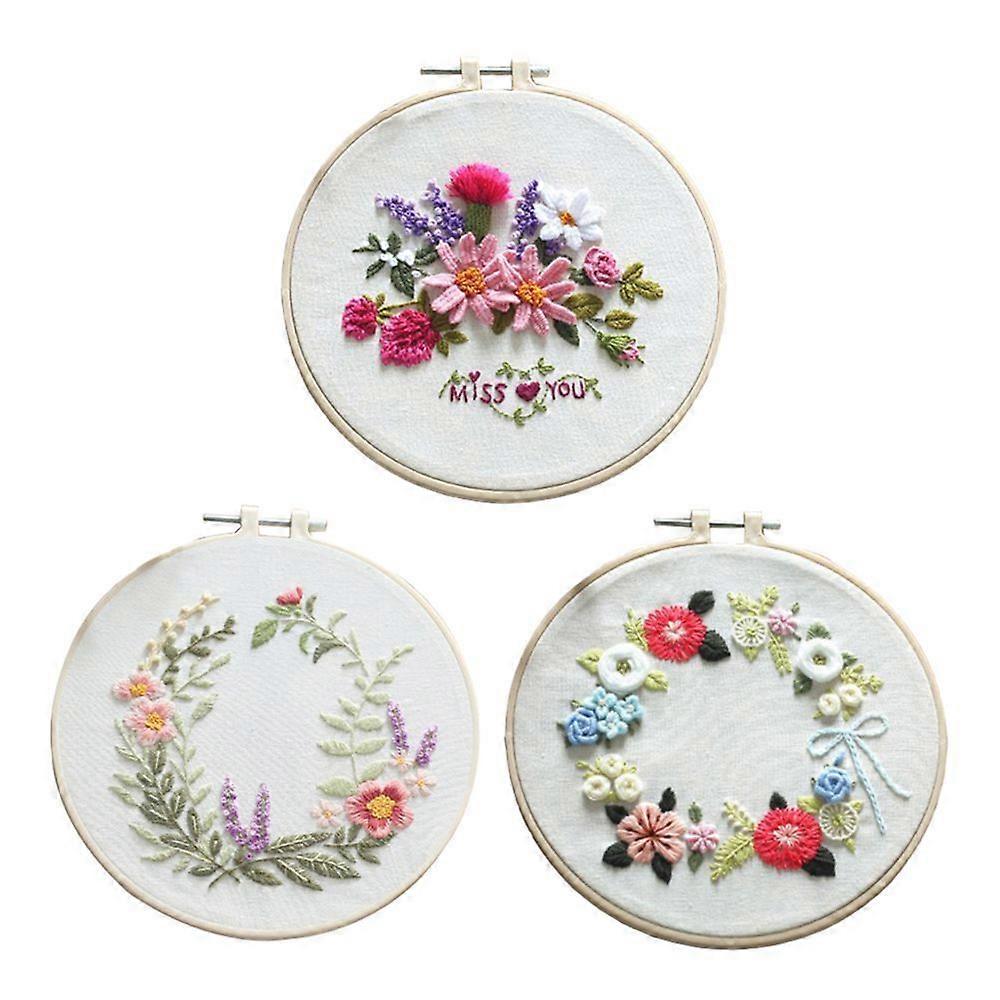 3pcs/ Embroidery Starter Kit with Flower Pattern , DIY Cross Stitch Embroidery Starter kit,Embroidery Starter Kit for Adults Beginner