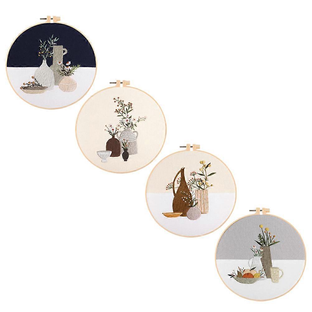 Embroidery Supplies Kit Household Embroidery Kits DIY Embroidery Textile Accessories Assorted Color 20X20cm Handcrafted Needlepoint 4Sets