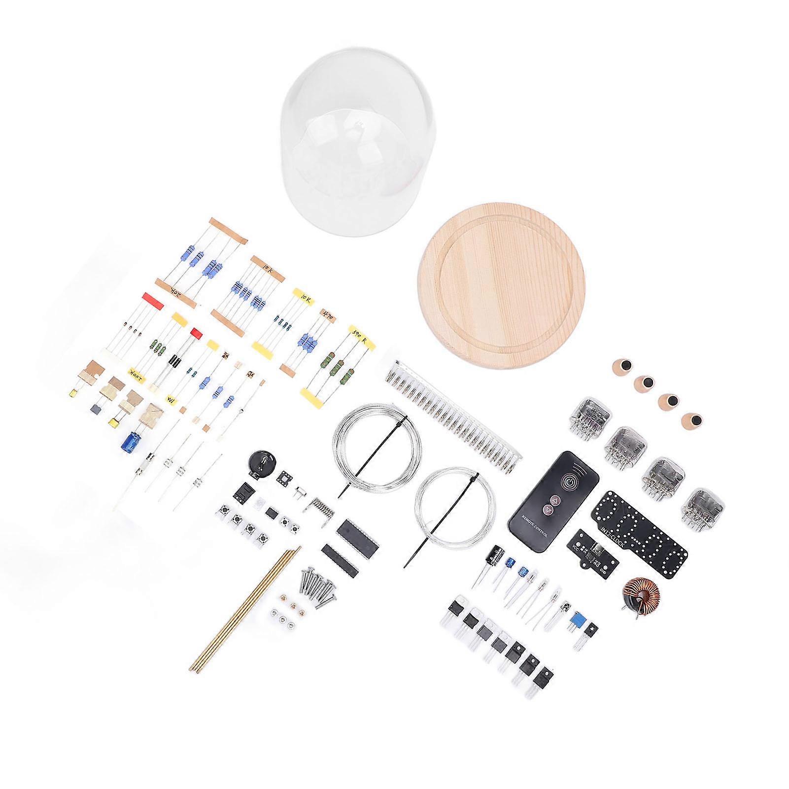 Digital Nixie Tube Clock Kit Retro Cyberpunk Electronic Tube Clock Kit for Desk Decoration Item Type: Glow Tube Clock Kit Material: Pine Wood Base, Glass, PCB Base: Pine Wood Base Size: Approx. 15.24cm / 6in Voltage: DC5V 1A USB Remote Control Battery: 3V Button Battery x 1 (Not Included) Product Battery: 3V CR2025 Button Battery x 1 (Not Included)