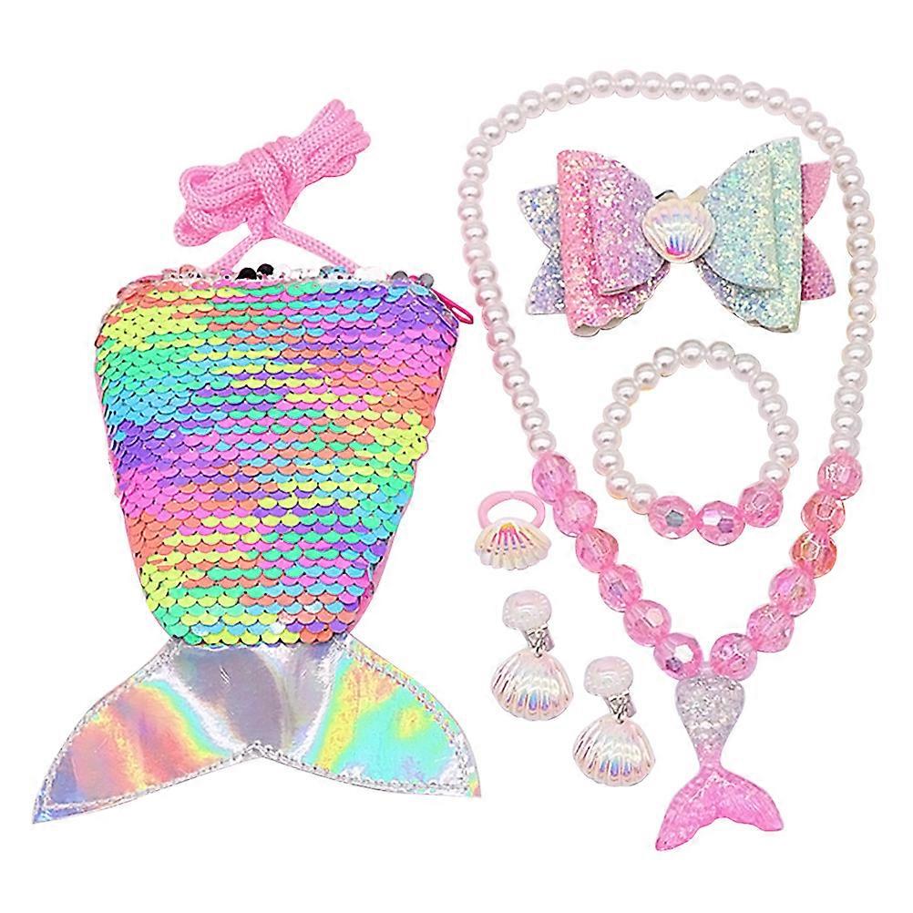 Princess Necklace Kit Mermaid Jewelry Set Toddler Dress Up Birthday Party Assorted Color 15x10x1cm 7Pcs