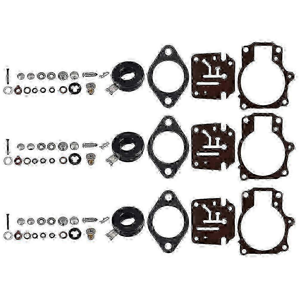 Carburetor Repair Kit 3-Pack & Float Fit for Johnson Evinrude 65/70/75 HP Edition 0716 Carbs