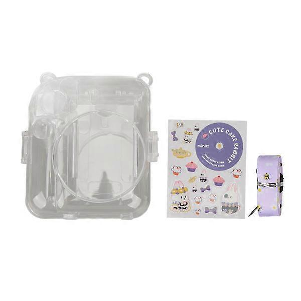 Instant Camera Bag Kit Shoulder Strap Sticker Camera Case Durable Camera Protection Transparent Bag for Instax Mini 12 Purple