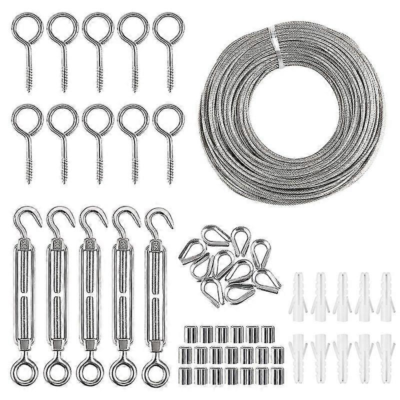 Stainless Steel Rope Hanging Kit, Garden Wire / Cable Hanging Kit / Outdoor Fairy Lights Fence Roll 30m