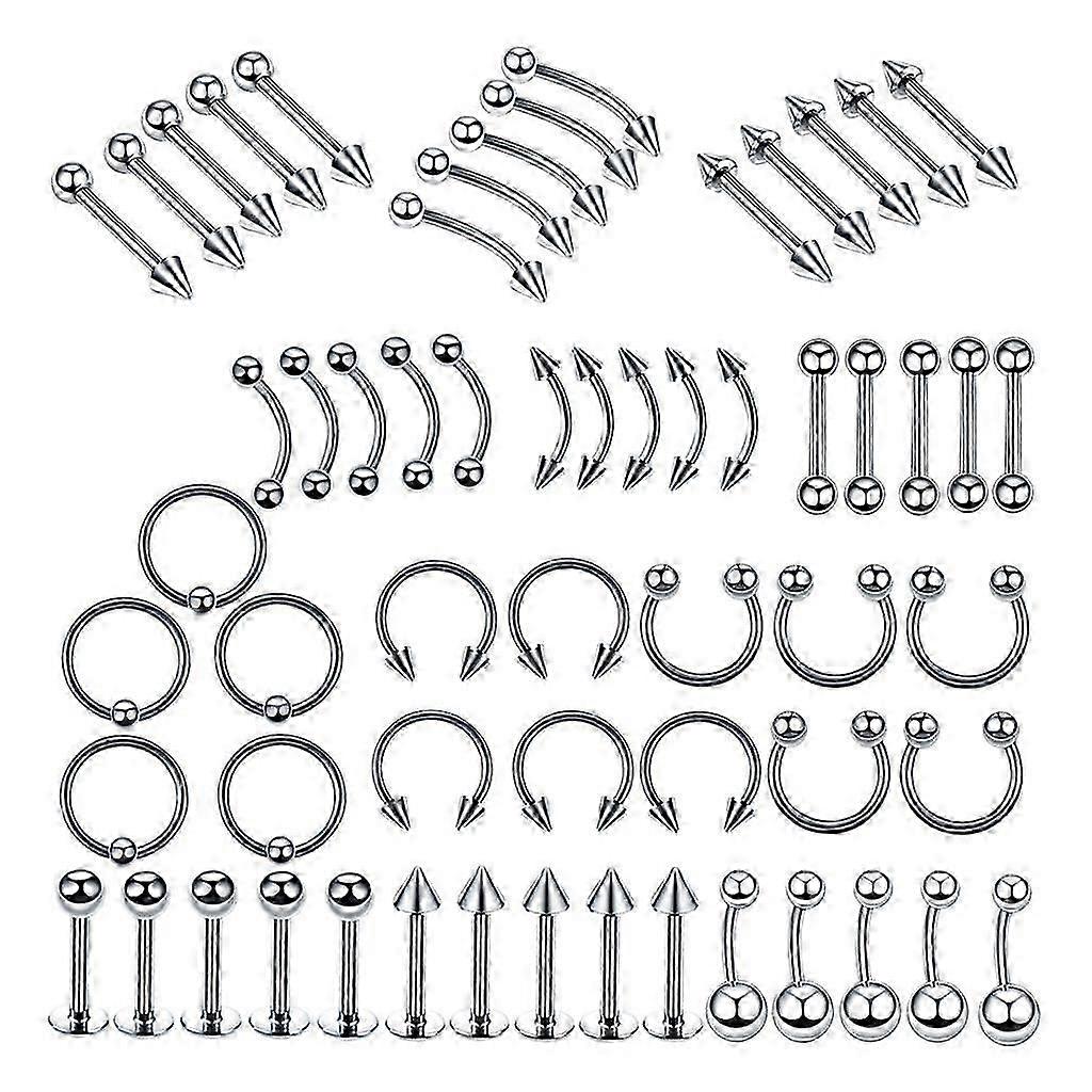 60Pcs Kit 16/14G Jewelry Tongue Tragus Ear Eyebrow Lip Nose -