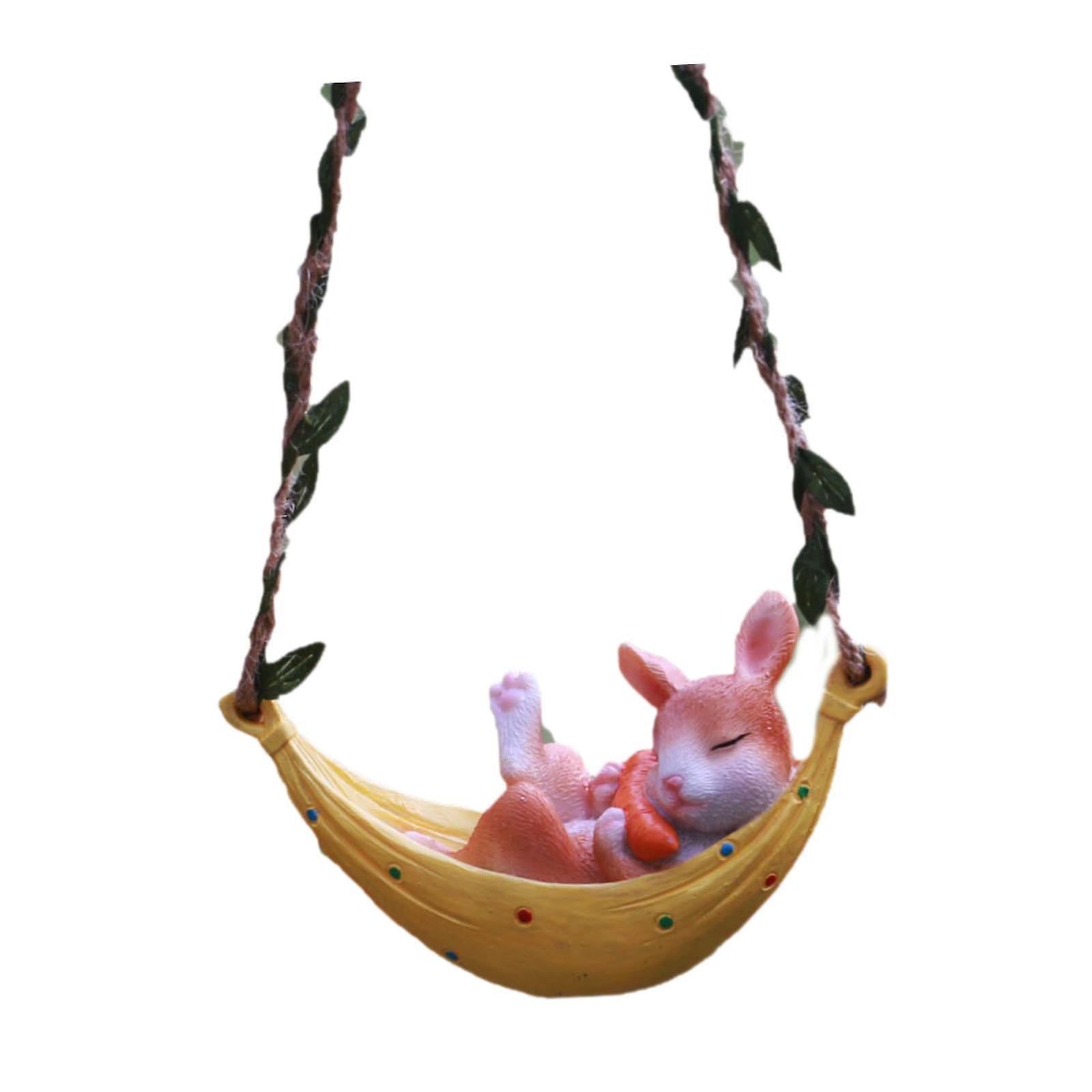 Hanging Hammock Swing Animal Statue Sculpture Hanger for Indoor Outdoor Tree Bunny