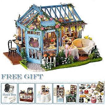 DIY House Miniature with Furniture LED Music Dust Cover Model Building Blocks Toys for Children Casa De Boneca A68