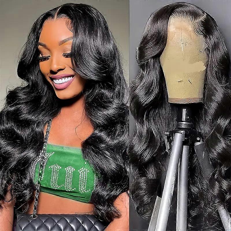 Front lace wig for women, middle parted big wave black long curly hair, natural full head wig style