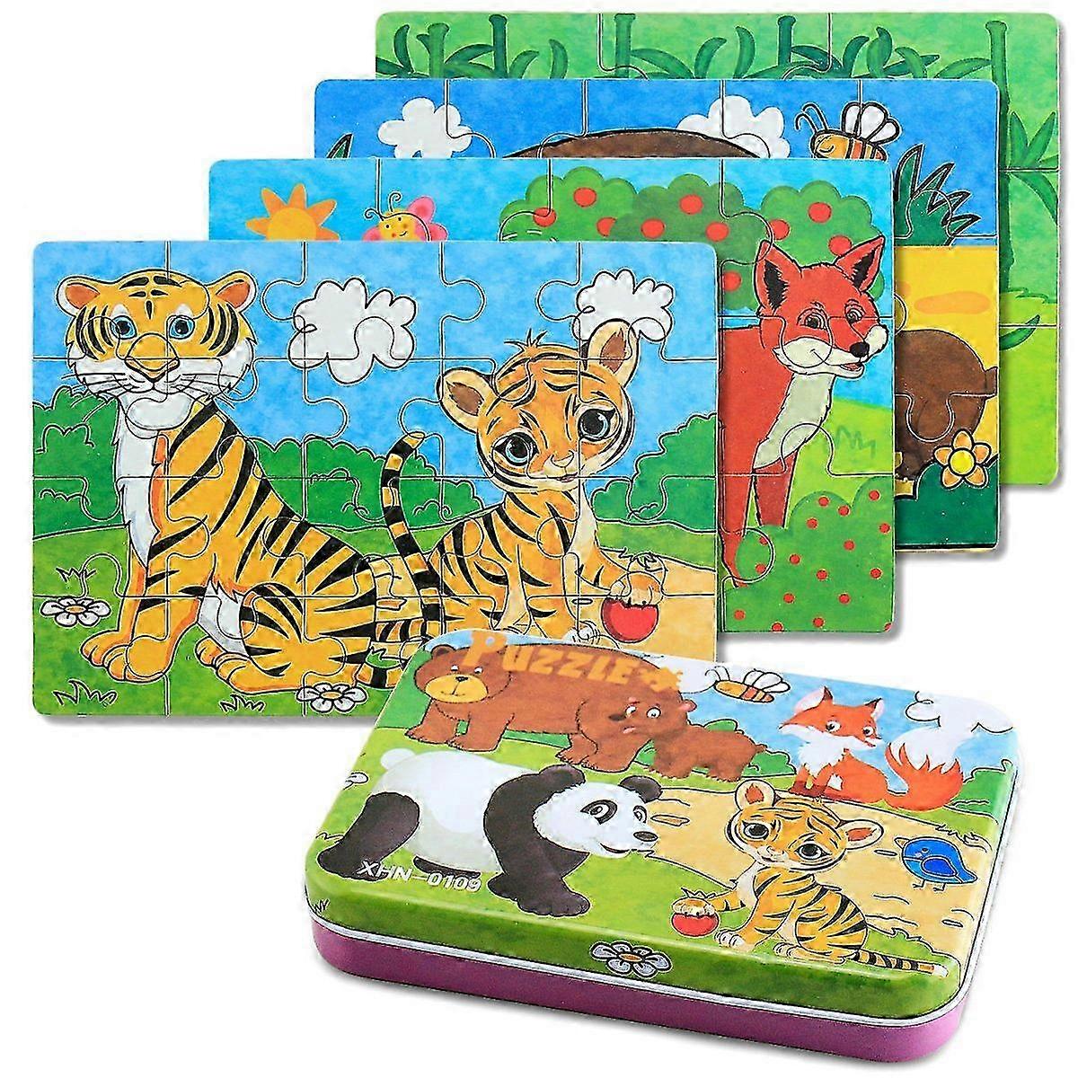 Jigsaw Wooden Puzzles Educational Learning Toy for Kids with Iron Box 25-26