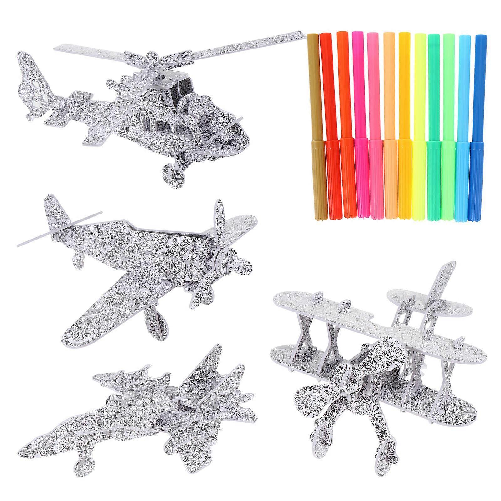 3D Puzzles DIY Painting Educational Kids Crafts Kit with 12 Pen Markers 4Pcs