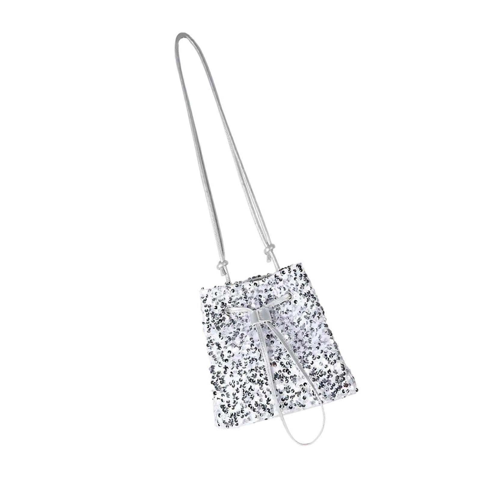 Sequins Bucket Bags Hoboes Purse for Women Drawstring Crossbody Bag Handbag Ladies Evening Bag Trendy Shoulder Bag Gifts Silver