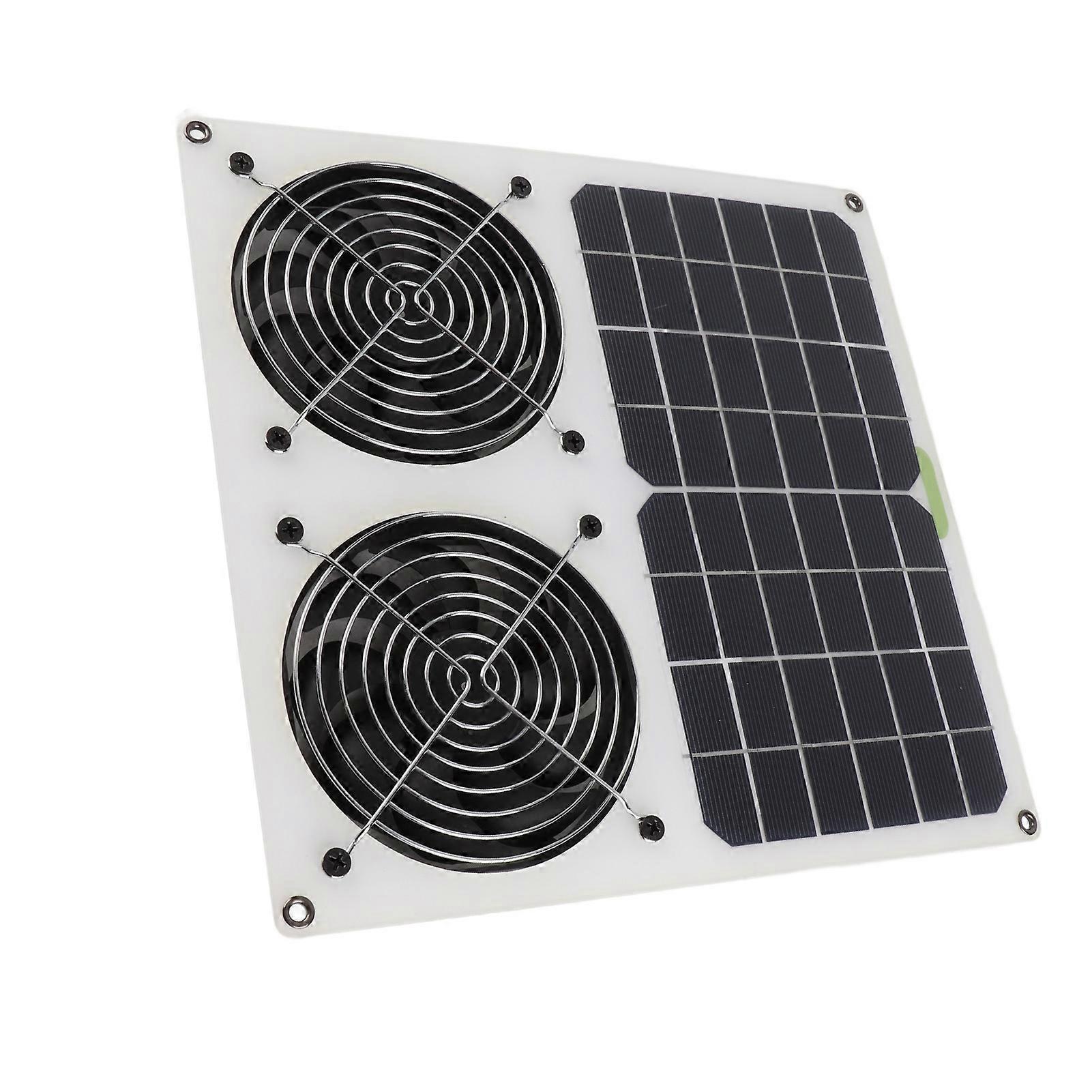 Solar Panel Powered Fan 12inch Waterproof Dual Fan 100W Solar Exhaust Fan for Chicken House Greenhouse Item Type: Solar Panel Powered Fan Material: ABS, Monocrystalline Silicon Weight: Approx. 550g / 19.4oz Product Size: Approx. 28x30x3cm / 11.0x11.8x1.2in Solar Panel Power: 100W (Without Storage Function)
