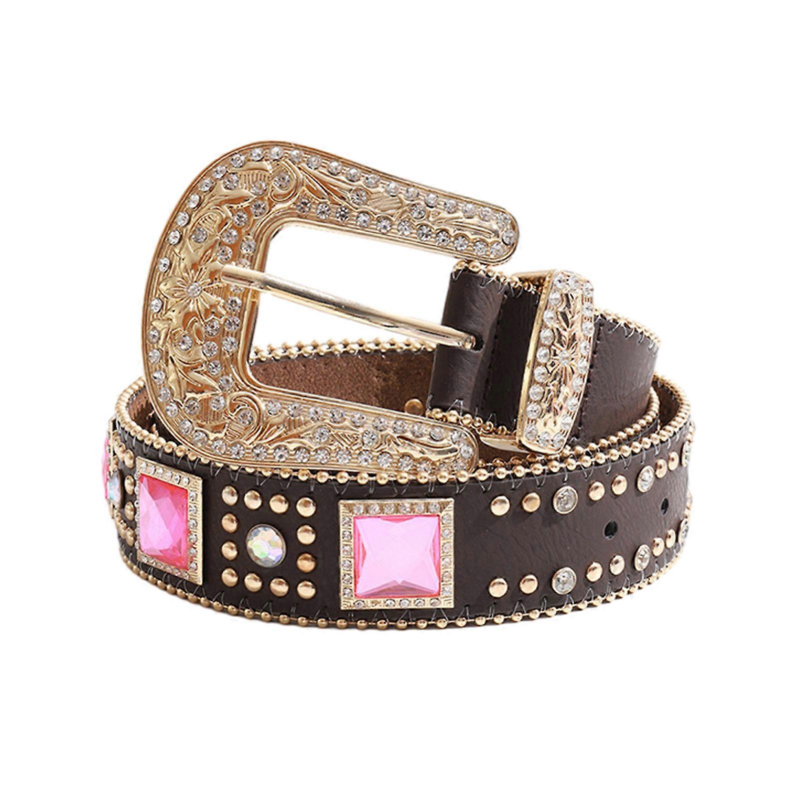 Punk Relief Pattern Buckle Belts Woman Locomotive Rhinestone Waist Belts Western Cowgirl Y2K Girls Belt for Jeans Men Coffee