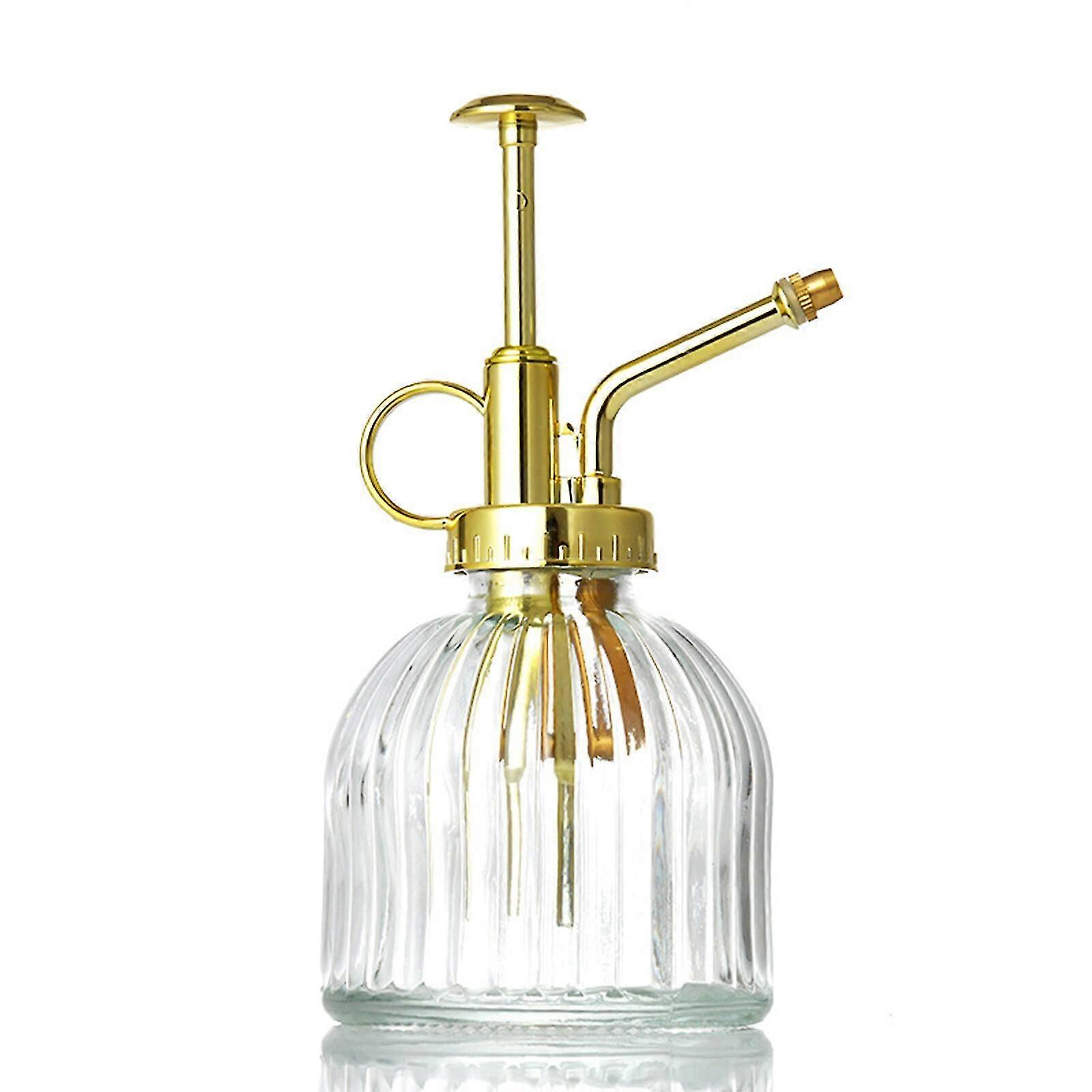 Vintage Sprayer Watering Can 200ml Sky Blue Glass Plant Mister With Gold Pump Garden