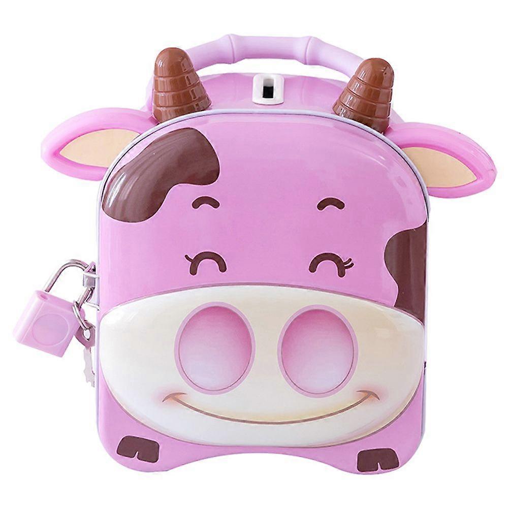 Tinplate Saving Pot Cartoon Lock Cow Piggy Bank Coin Bank Cow Money Box Gift