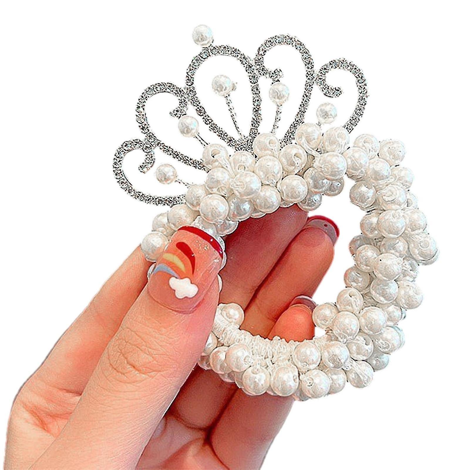 Fianao Crown Princess Hair Bands Elastic Rubber Ties Elegant Faux Pearl Gentle Hair Styling Accessories