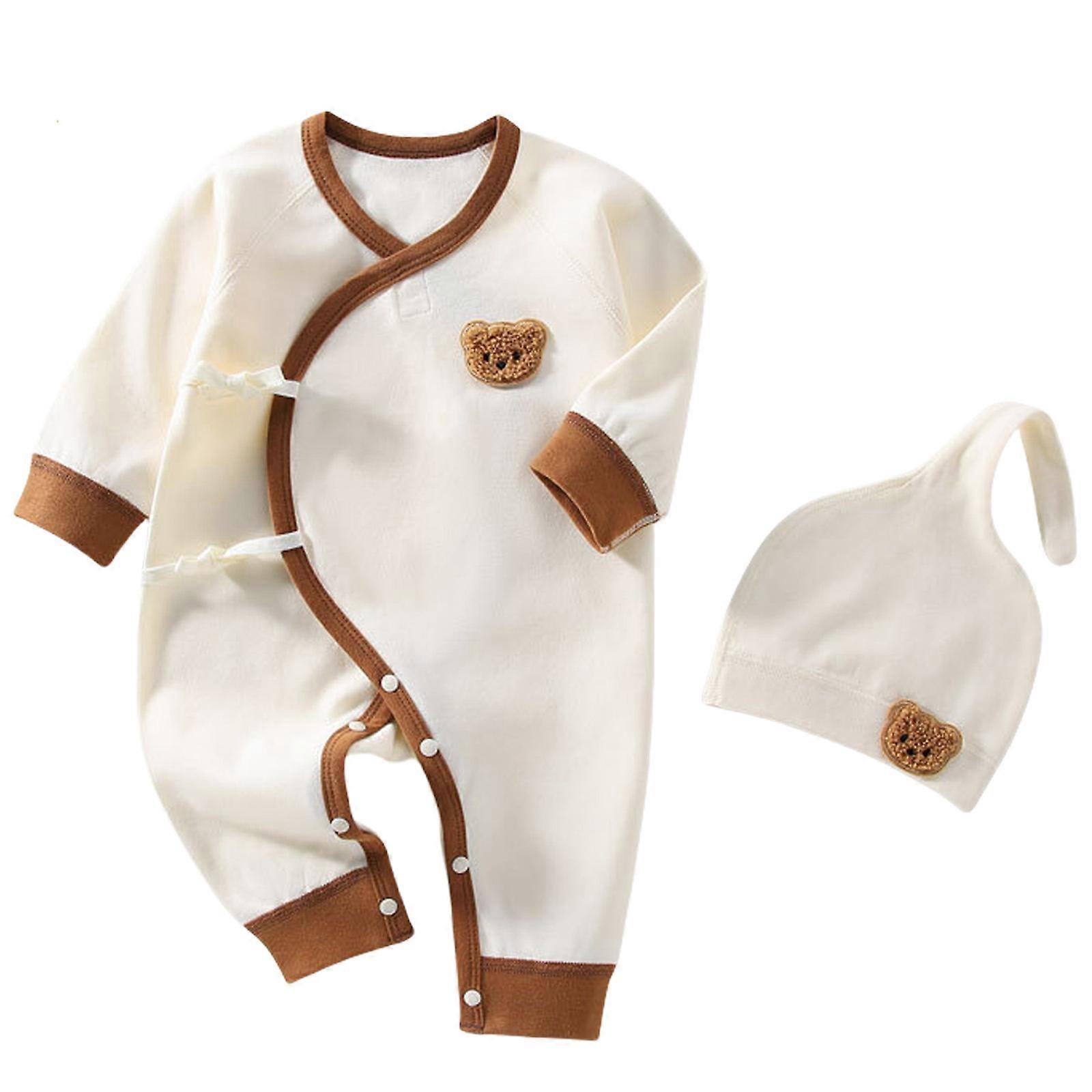 Newborns Hat Romper Comfortable Baby Spring OnePieces Soft Cartoon Pajamas Long Sleeved Baby Pajamas for Four Season 66cm for 2 to 3M