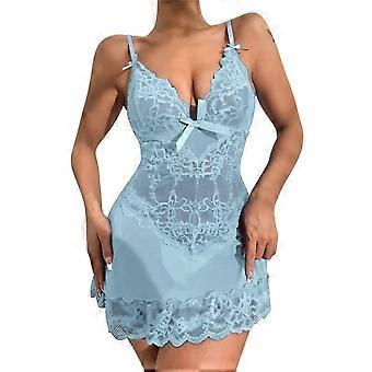 Sexy Pajamas Women'S Lingerie Nightdress with Thong Ladies Thin Floral Lace Fashion Solid Perspective Night Wear