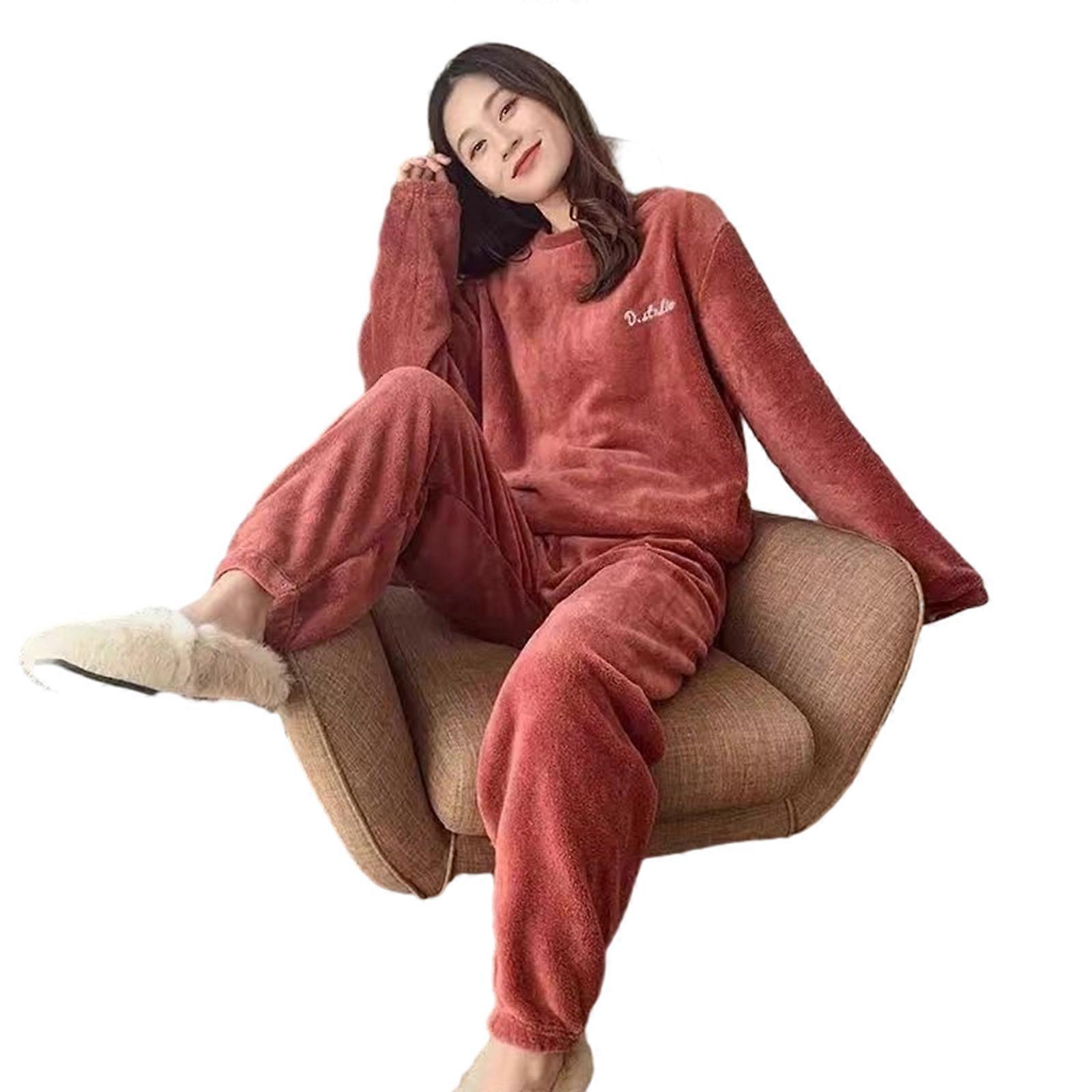 Women's Coral Fleece Pajamas Flannel Sleepwear Soft Pajamas Set Sleepwear Winter Warm Loungewear jam red
