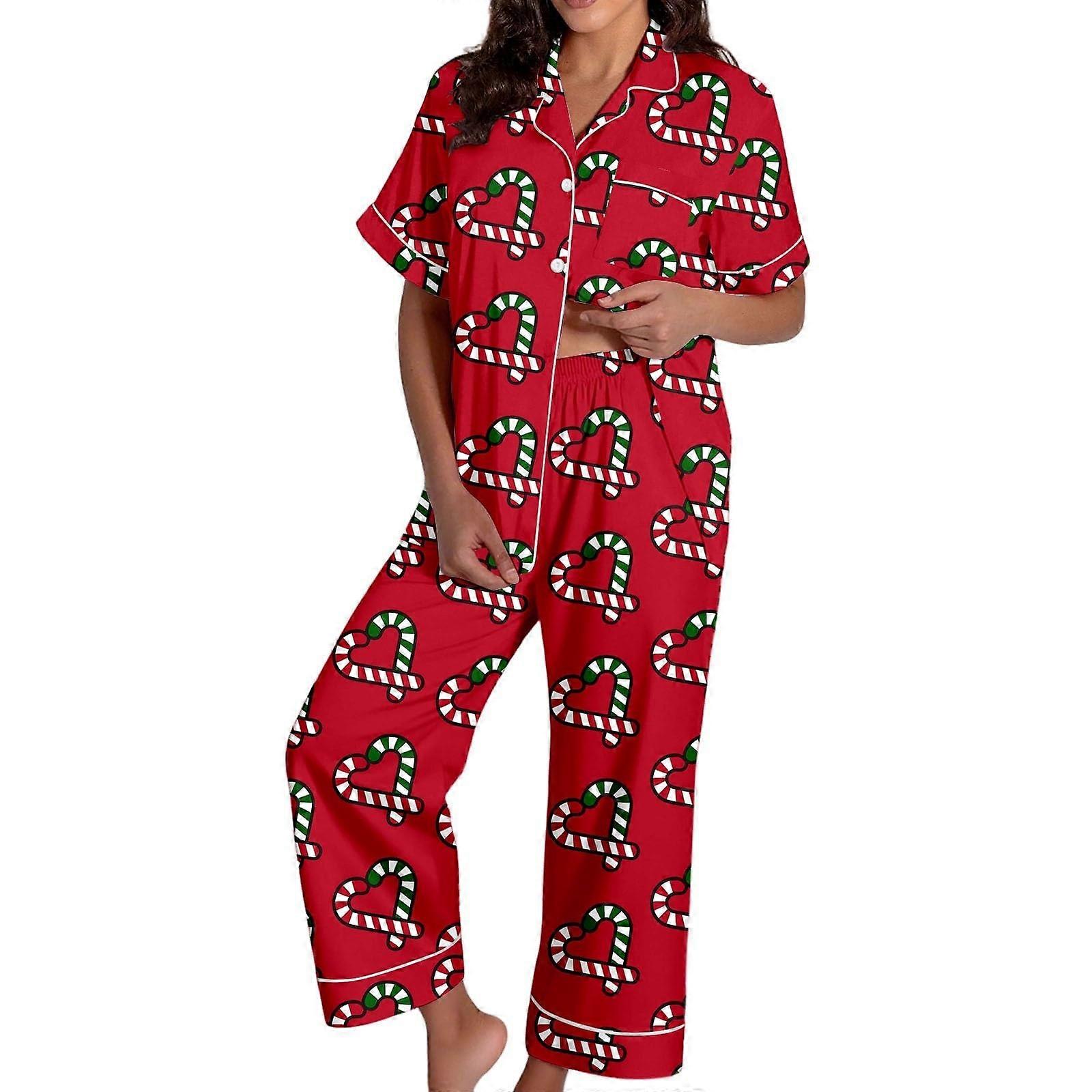 Christmas Pajamas Women's Two-Piece Christmas Pajamas Long Sleeve Button Shirt and Pants Set Home Clothes Burgundy XL