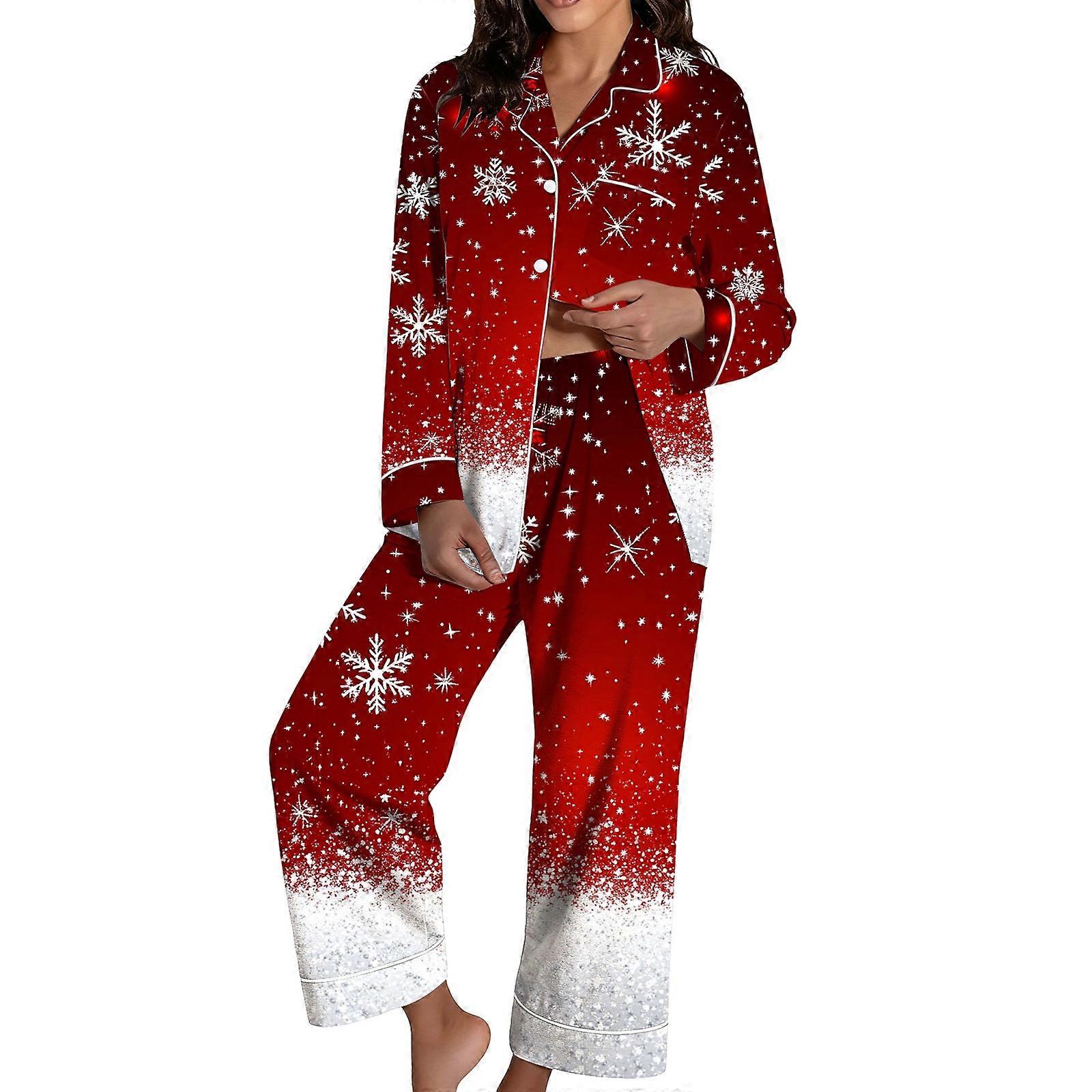 Christmas Pajamas Women's Two-Piece Christmas Pajamas Long Sleeve Button Shirt and Pants Set Home Clothes Burgundy XL