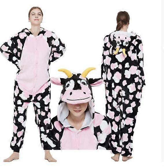Plush Milk Cow Onesie Pajamas For Adults Cartoon Animal Sleepwear Halloween Cosplay Costume Sleepwear For Women And Men L