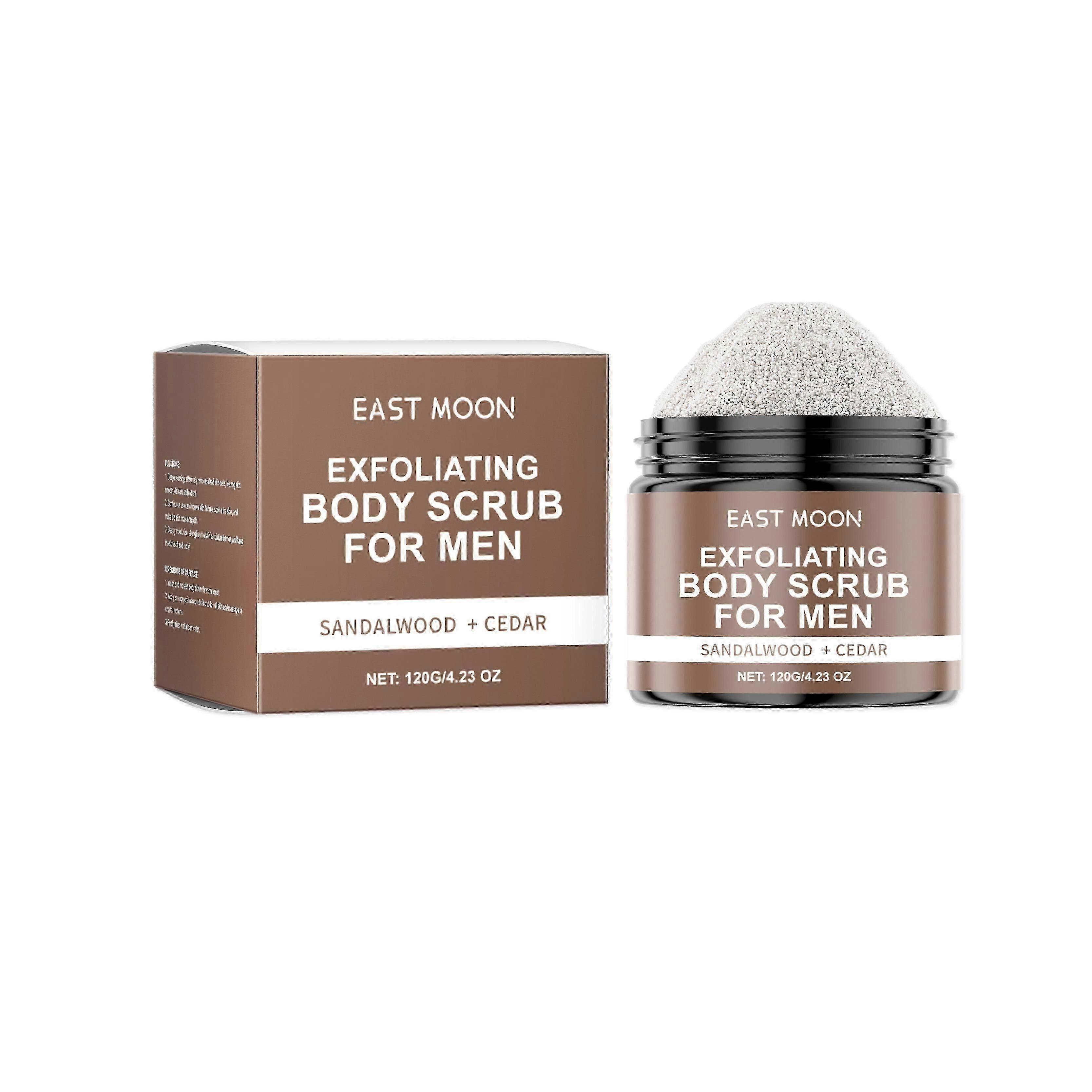 New model East Moon Sandalwood Cedar Men's Body Scrub is refreshing, non greasy, and gently cleanses the skin's keratin