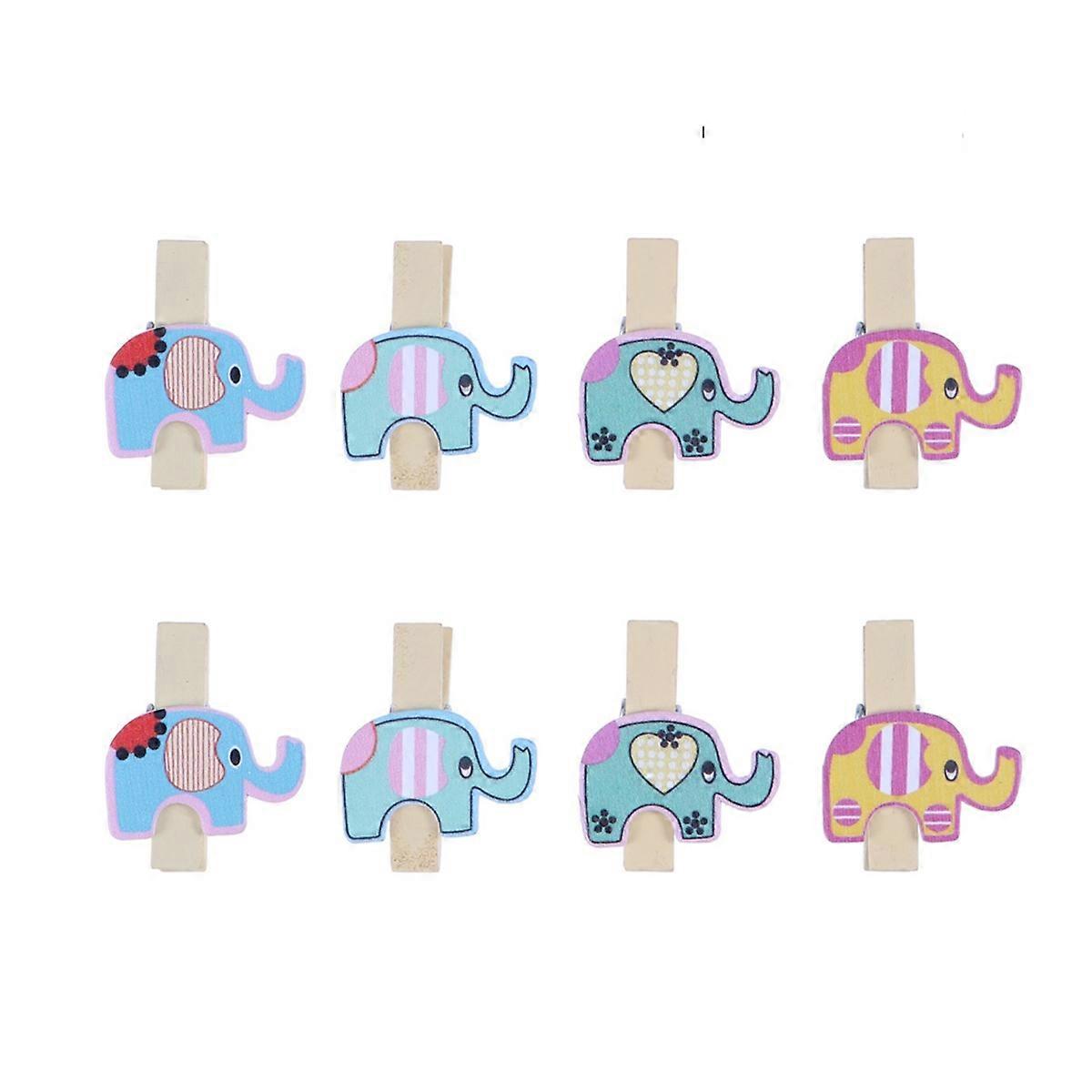 Elephant Paper Clips Wooden Cartoon Colored Mini Office Supplies Craft Memo Clip DIY Clothes Photo Decoration 40Set