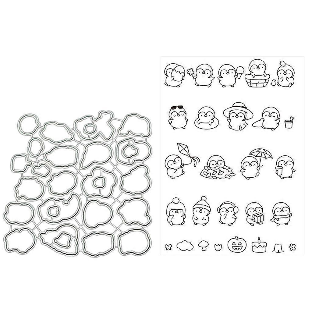 Penguins Metal Cutting Dies with Stamp for DIY Journaling Photo Album Crafts