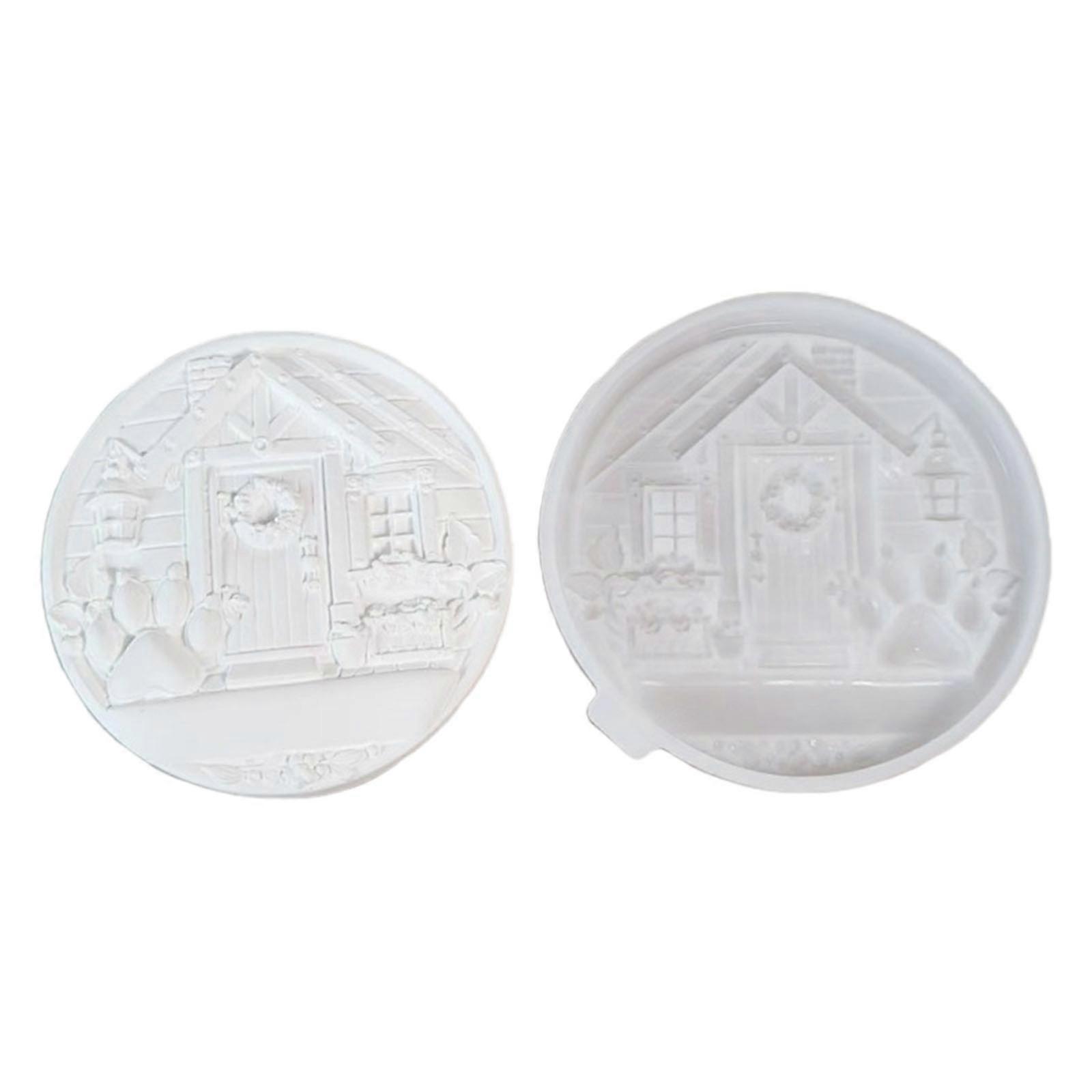 Sculptiong Christmas House Round Shape Wall Art Silicone Mold DIY Plasters Hanging Sign Plaque Craft Project Supplies Multicolor