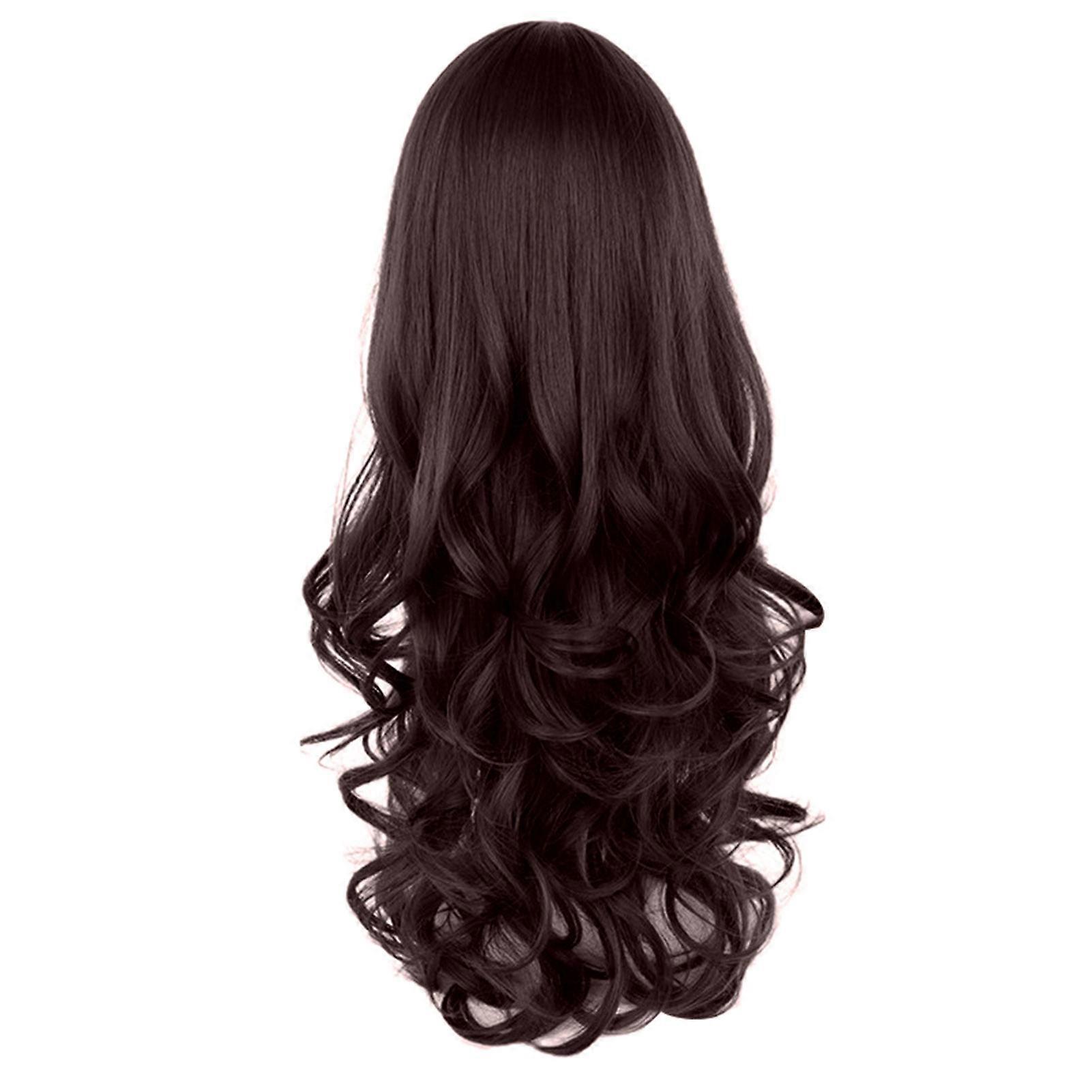 Hairpiece Large Wave Comfortable Women Natural Bangs Long Curly Wig for Party QinHai