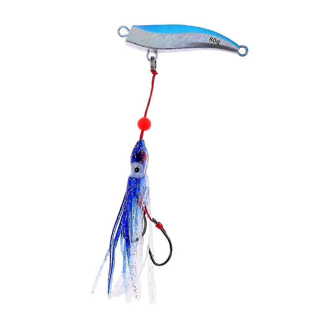 Fishing Lead Jig Head Bait Fishing Lures with Soft Squid Lure Tackle Blue