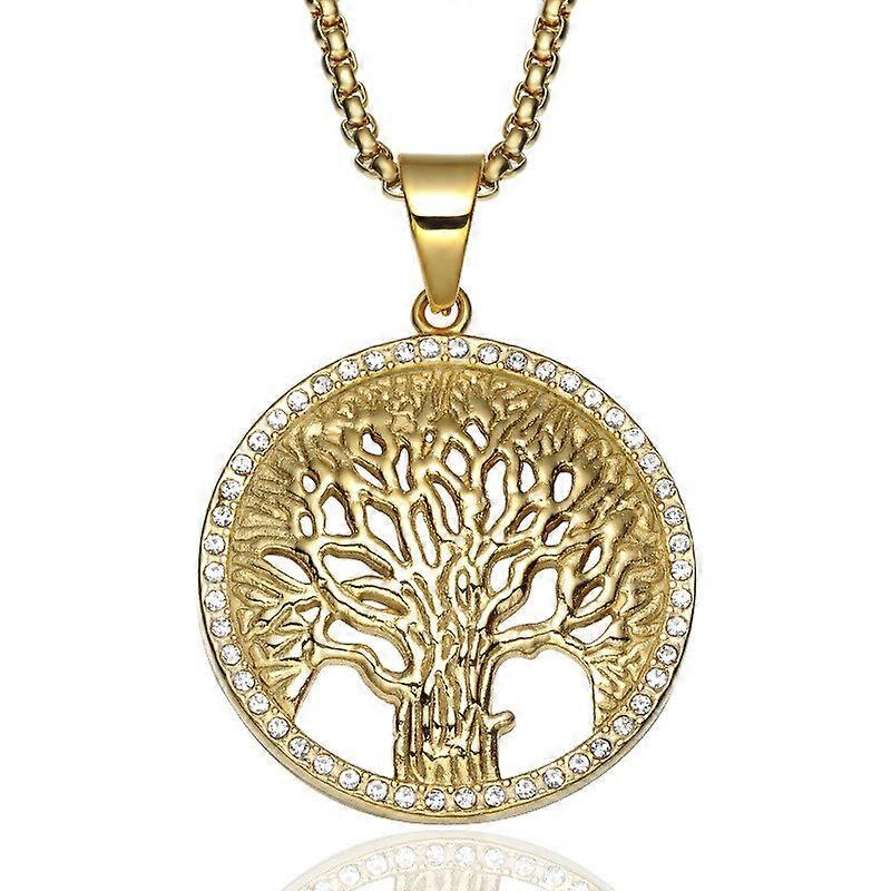 Stainless Steel Judaism Christian Life Tree Full Diamond Necklace Round Religious Pendant Transfer Amulet Sweater Chain