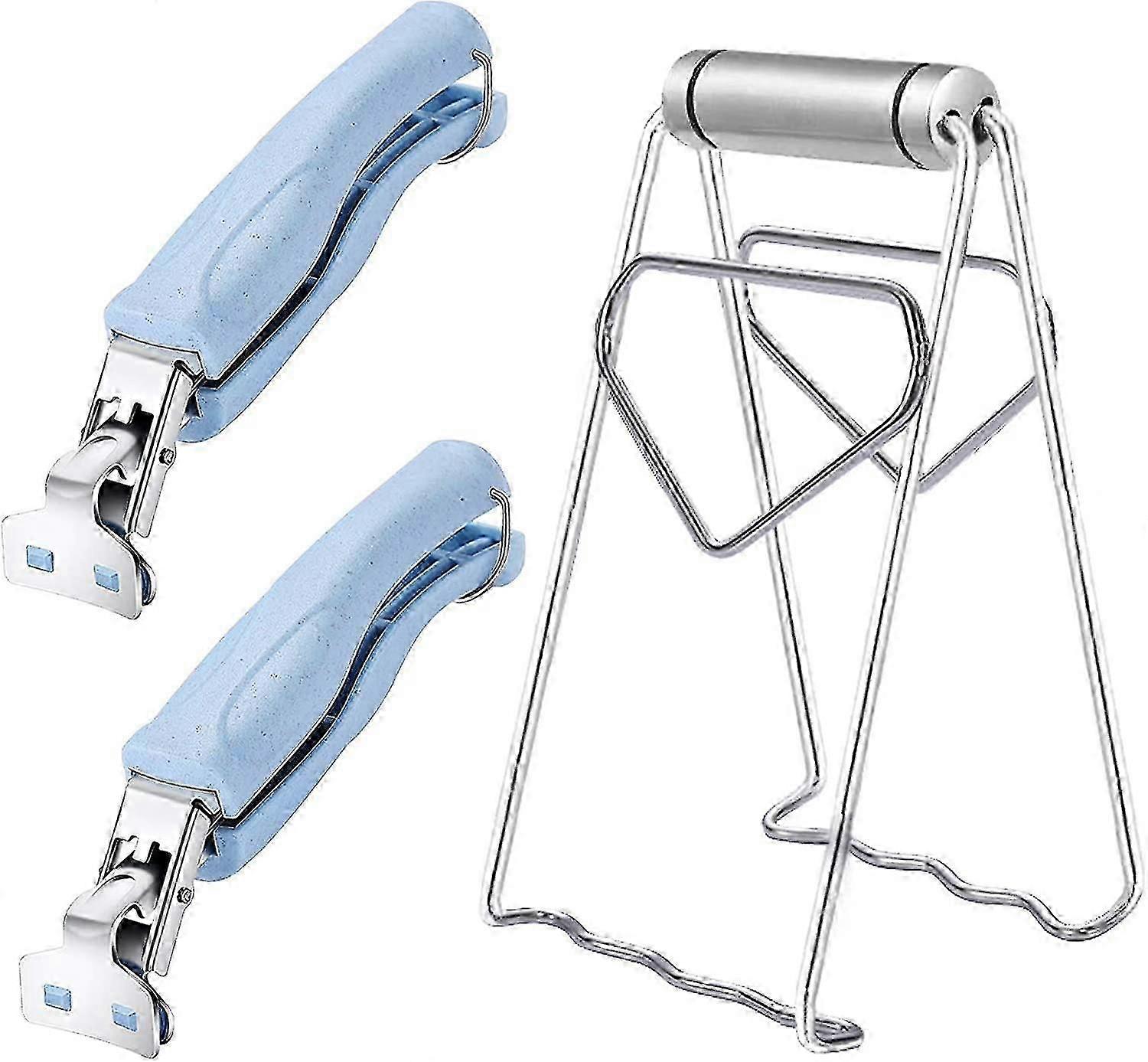 [Kitchen Anti-scalding Set Bowl Gripper Clip]Use plate gripper to safely clip out hot bowl disk plate tray or other hot container of any sizes and shapes for steamer pots, micro wave, oven, air fryer, boiling pots. B-type is stainless steel foldable disk palte bowl clip tong hot plate gripper, The combination of B-type and A-type is more convenient to use. [Scientific Design]B-type foldable disk clip material diameter 0.157 inch, and A-type tongs material thickness 0.06 inch , Both structures are very strong, which are enough to clip the weight of most types of plates or bowls without deformation and sliding. The large wavy design of B-type clipper and silicone tips design of A-type tongs have greatly improved the anti-skid performance. [Good and Convenien Gripper]B-type gripper made of high quality food grade 304 stainless steel, and A-type gripper made of 201 stainless steelcorrosion resistant, rust free, easy to clean, not easy to deformation, Simple and beautiful, Strong and durable for a long time. Both refer to the principle of human body mechanics in structure, which makes single hand operation more convenient, comfortable and labor-saving. [Essential Kitchen Cooking Tongs]There are too many opportunities for family and friends to have dinner together. You need to take out hot dishes quickly without time to wait. It can save you time and help you make more effective use of the only cooking equipment. [Package]1pcs B-type gripper + 2pcs A-type gripper ( blue)