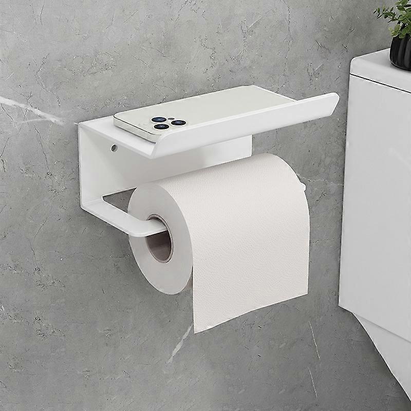 Carbon Steel Wall Mounted Bathroom Toilet Paper Roll Holder Mobile Phone Storage Shelf-White