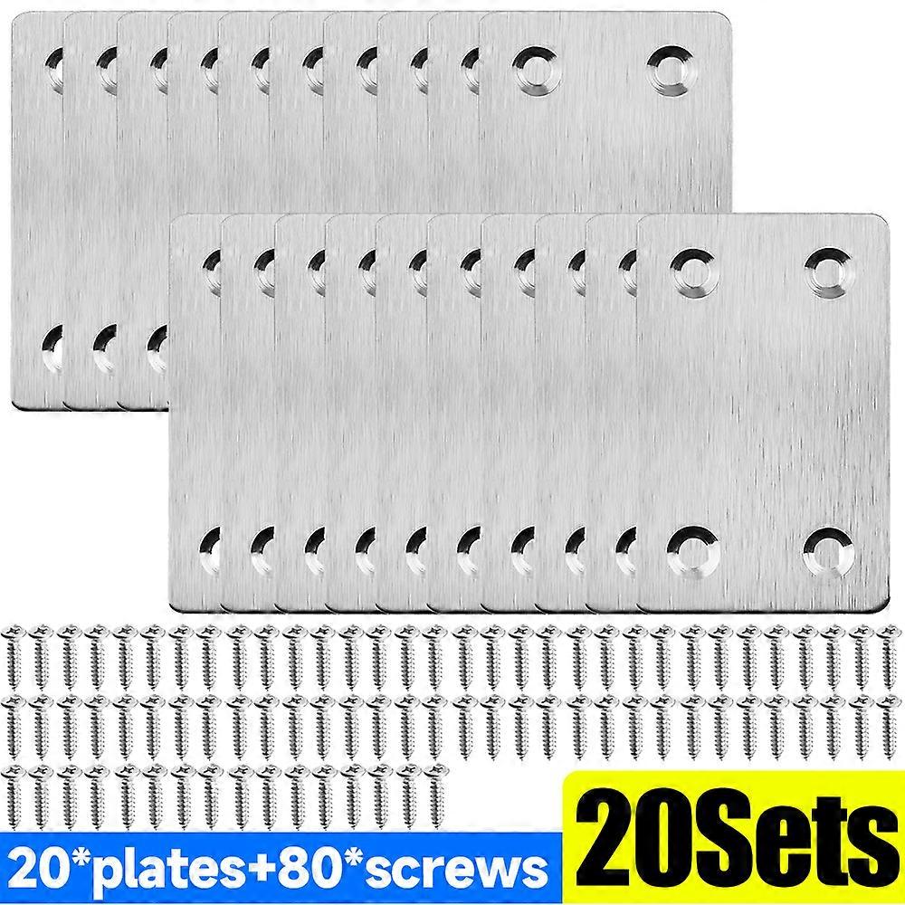 Stainless Steel Flat Mending Plates 4 Hole Straight Fixing Wooden Furniture Cabinet Repair Support Join Fasteners with Screws