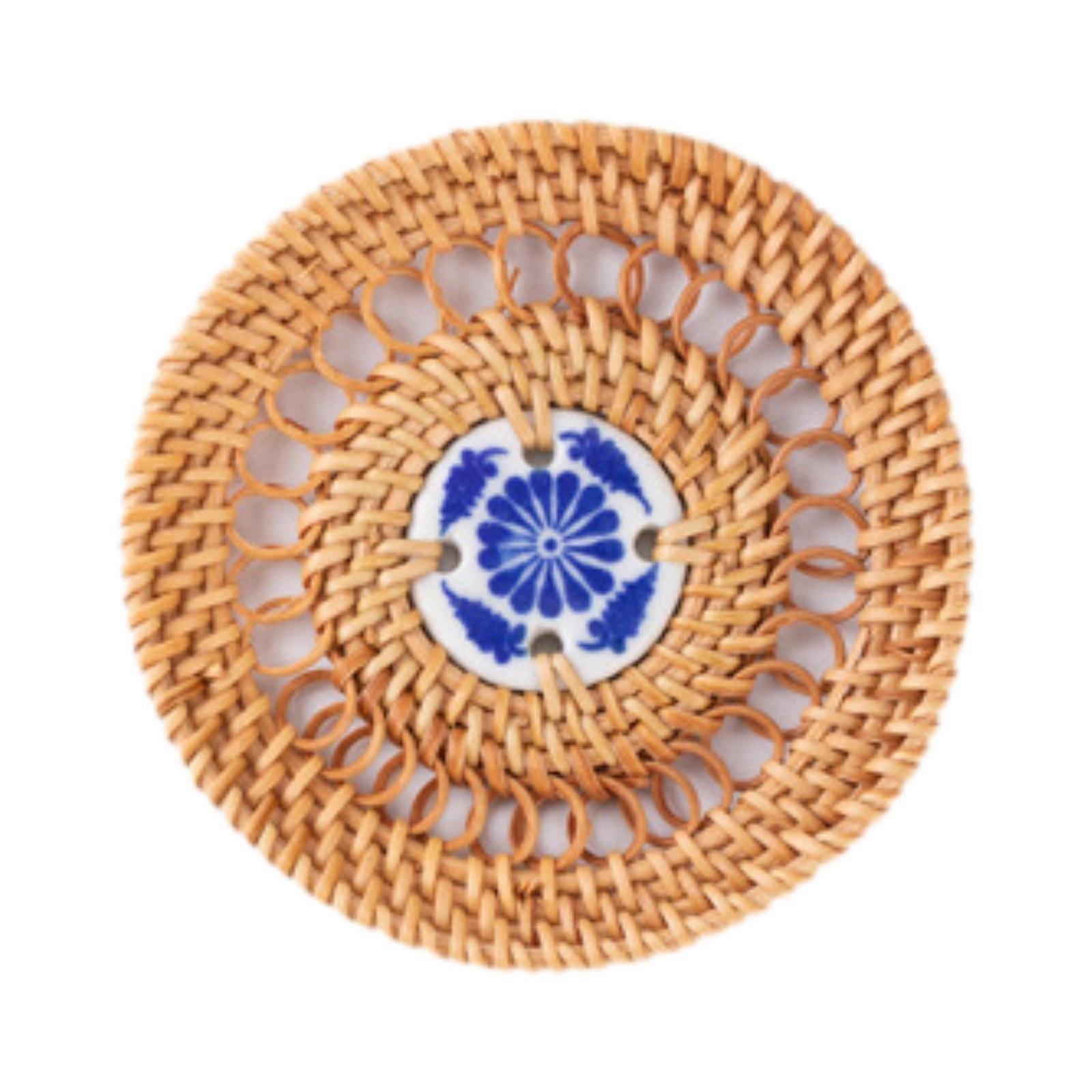 Round Woven Placemat Non Slip Rattan Placemat for Holiday Dinner Dining Home 8cm