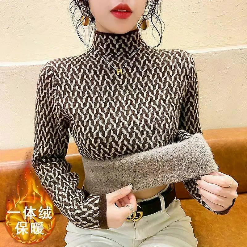 Fleece Sweater Bottoming Shirt Female Autumn Winter Thick Interior Lapping Half Height Collar Slim Pullovers Fashion Top Tee