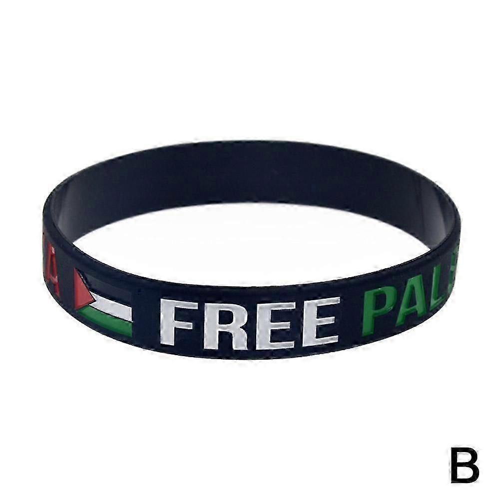 Product Description:1.Product Name: Palestinian silicone bracelet2.Product size: about 20cm(7.87in) ,1.2cm(0.47in)3.Product style: bracelet4.Product color: as shown in pictures5.Product material: siliconeProduct features:1.Show your solidarity with Palestine with this eye-catching bracelet featuring the Palestinian flag design.2.The vibrant colors of the Palestinian flag, including red, white, black, and green, are beautifully showcased in this bracelet.3.The flag charm is intricately designed to represent the Palestinian people's struggle for independence and their aspirations for a sovereign state.4.Made with high-quality silicone, this bracelet is comfortable to wear and durable, ensuring it will last through daily wear and tear.5.With its adjustable band, this Palestinian flag bracelet offers a perfect fit for anyone and serves as a powerful symbol of support for the Palestinian cause.5.Whether you're attending a sports event, showing your national pride, or simply accessorizing your outfit, this Palestinian flag silicone wristband is a great choice.Shipping includes:1 pc bracelet