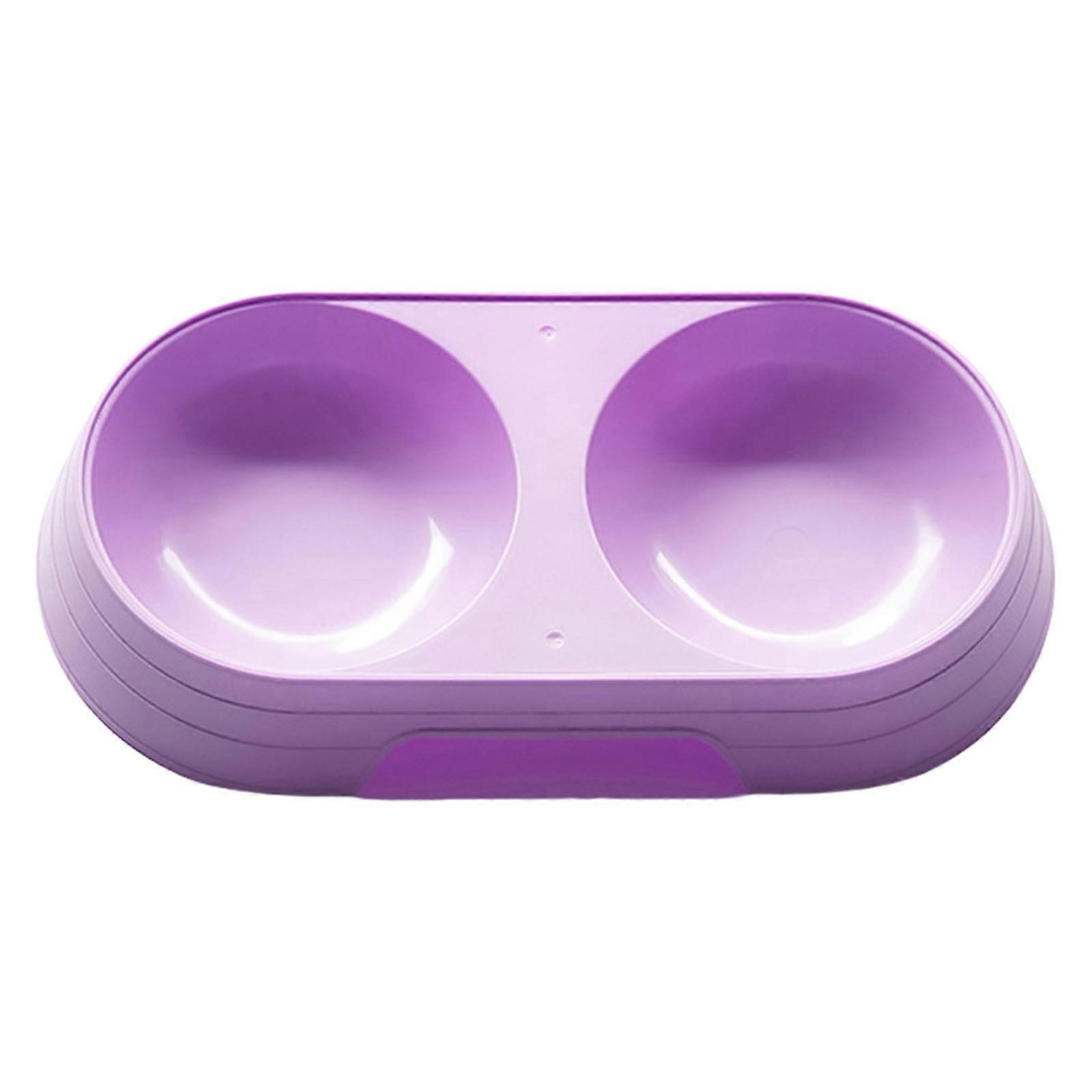 Plastic Double Compartment Feeder Pet Feeding Bowl For Small Breeds Kittens With NonSlip Design for Home Travel Use Purple