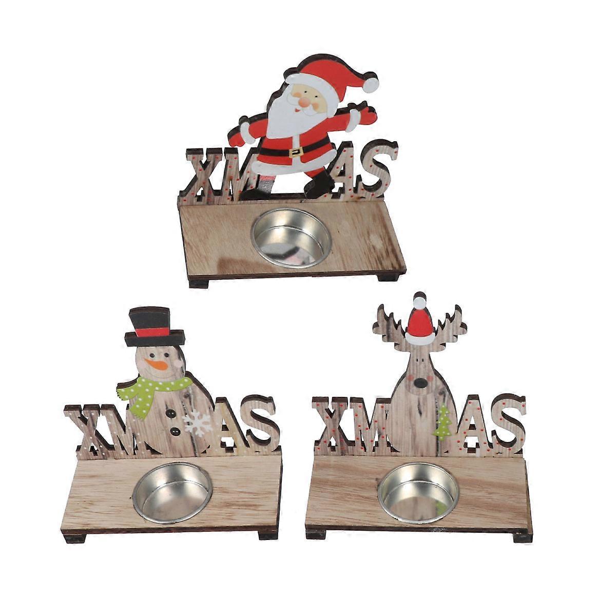 Candlestick for Dining Table Wooden Candle Holder Christmas 6Pcs Cartoon
