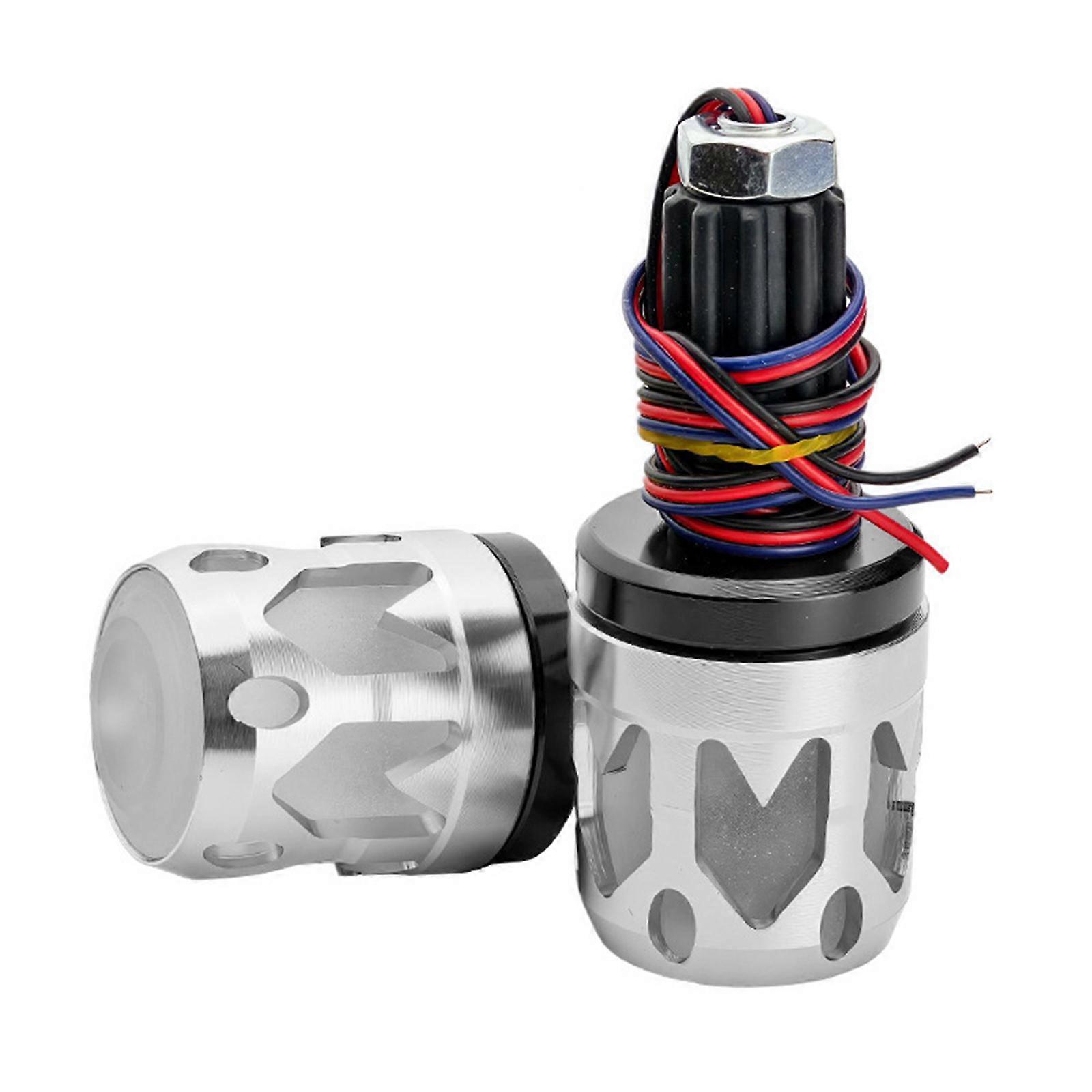 Universal Bike Handlebar End Lights With Multicolor LED Aluminum Construction Quick Installation For Night Visibility Silver