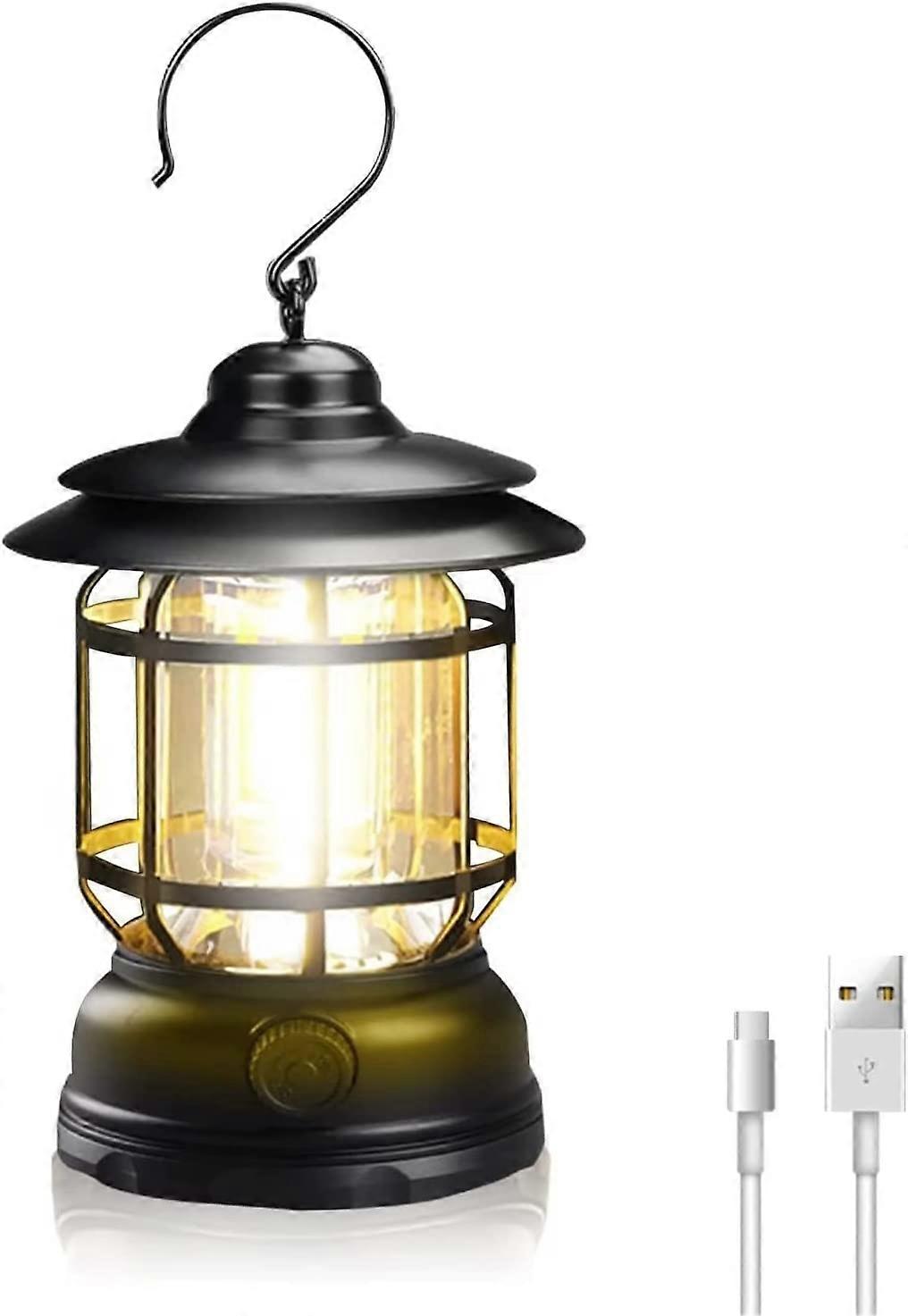 Camping Lanterns Rechargeable Lamp Retro Metal Camping Light 2 Light Modes LED Lantern Tent Light for Camping Night Fishing Hiking Home Lighting Emerg